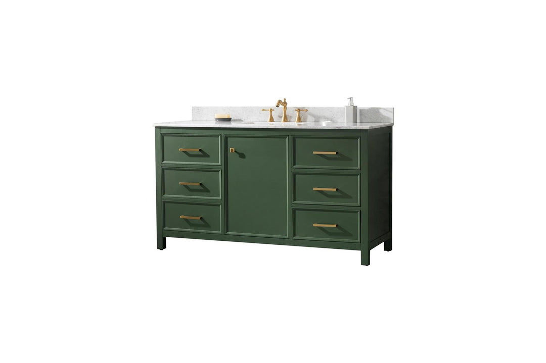 Legion Furniture WLF2160 Series 60" Single Sink Vanity in Vogue Green with Carrara Marble White Top