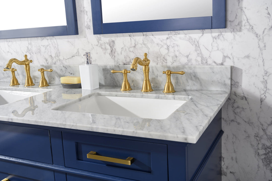 Legion Furniture WLF2254 Series 54” Double Sink Vanity in Blue with Carrara Marble White Top