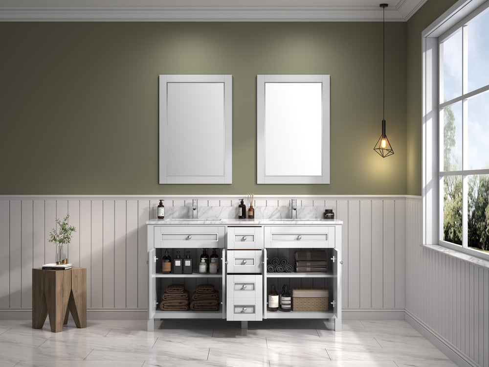 Legion Furniture WV2260 Series 60” Double Sink Vanity in White with Carrara Marble White Top