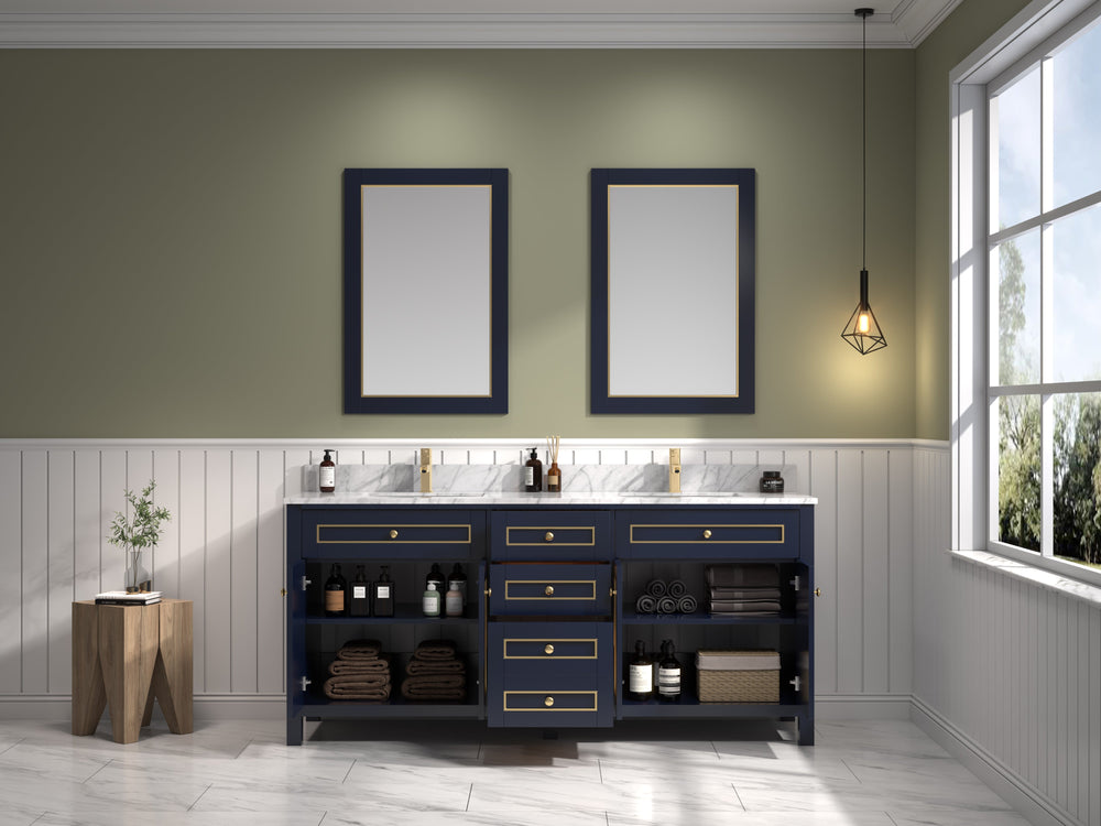 Legion Furniture WV2272 Series 72” Double Sink Vanity in Blue with Carrara Marble White Top