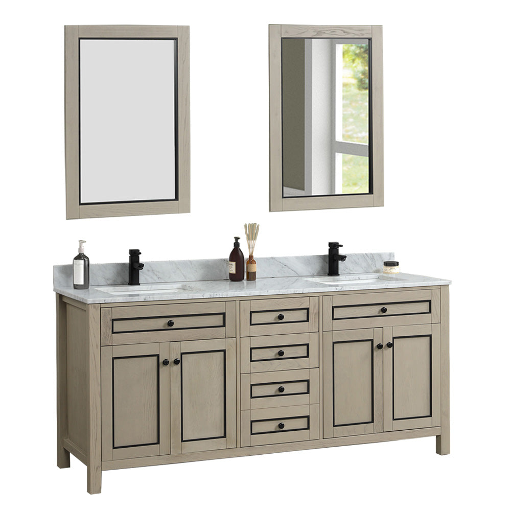 Legion Furniture WV2272 Series 72” Double Sink Vanity in Light Oak with Carrara Marble White Top