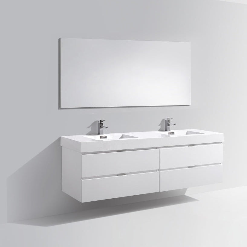 KubeBath Bliss 72" Double Sink High Gloss White Wall Mount Modern Bathroom Vanity BSL72D-GW