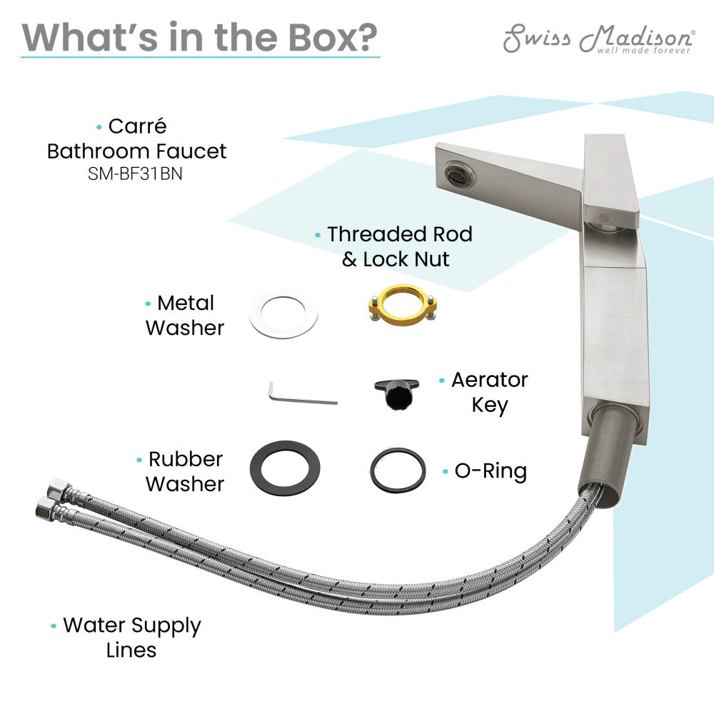 Embrace geometric balance with the Carre collection, where clean lines and modern design principles take center stage. Discover simplicity and sophistication in one with our single-handle faucets, offering smooth operation and contemporary design. Offered in brushed nickel.
