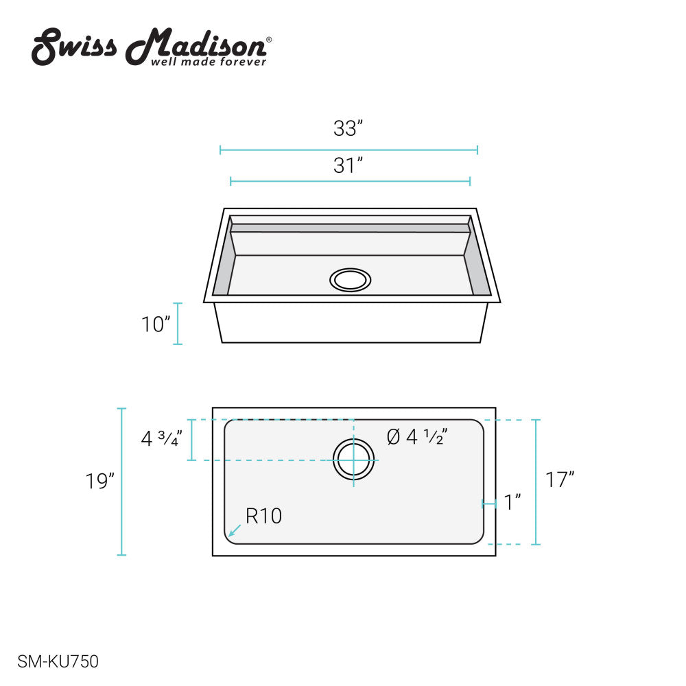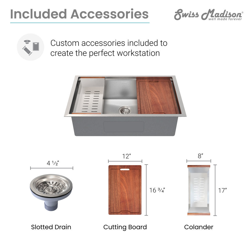 Rivage 33 x 19 Single Basin Undermount Kitchen Workstation Sink