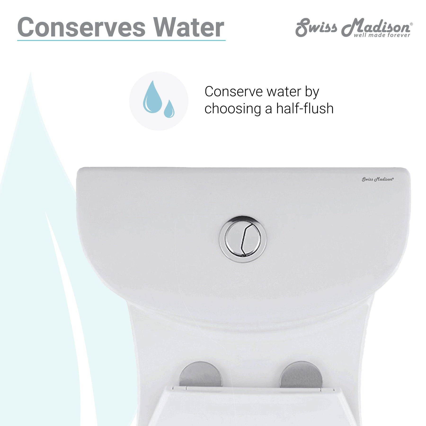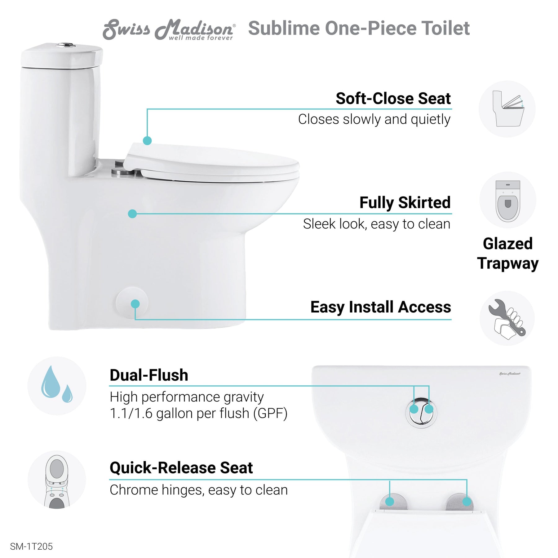 • Dual-flush with high-performance gravity 1.1 / 1.6 gallons per flush (GPF)