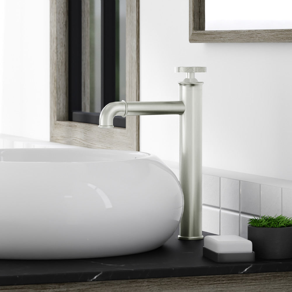 Avallon Single Hole, Single-Handle Wheel, High Arc Bathroom Faucet in Brushed Nickel