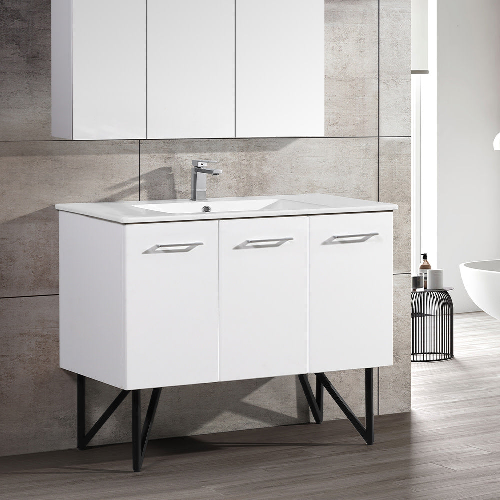 Annecy 48 Single, Glossy White, Two Doors, One Drawer, Bathroom Vanity