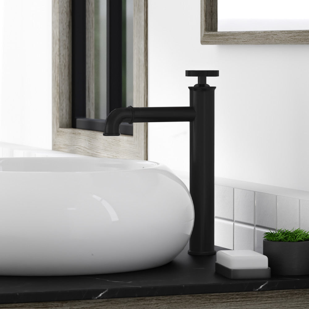 Avallon Single Hole, Single-Handle Wheel, High Arc Bathroom Faucet in Matte Black