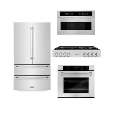 ZLINE Kitchen Package with Refrigerator, 48 in. Stainless Steel Rangetop, 30 in. Single Wall Oven, 30 in. Microwave Oven (4KPR-RT48-MWAWS)