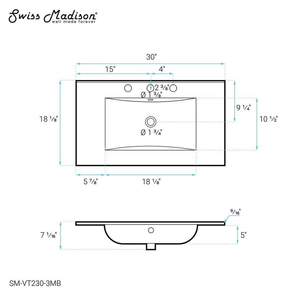 Discover intricate precision and design excellence in the Swiss Madison collection, redefining contemporary bathroom aesthetics. Discover the epitome of seamless design and effortless maintenance with our vanity tops. A perfect blend of aesthetics and functionality. Offered in black with a matte finish.
