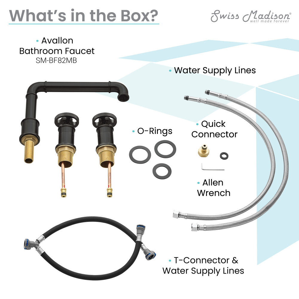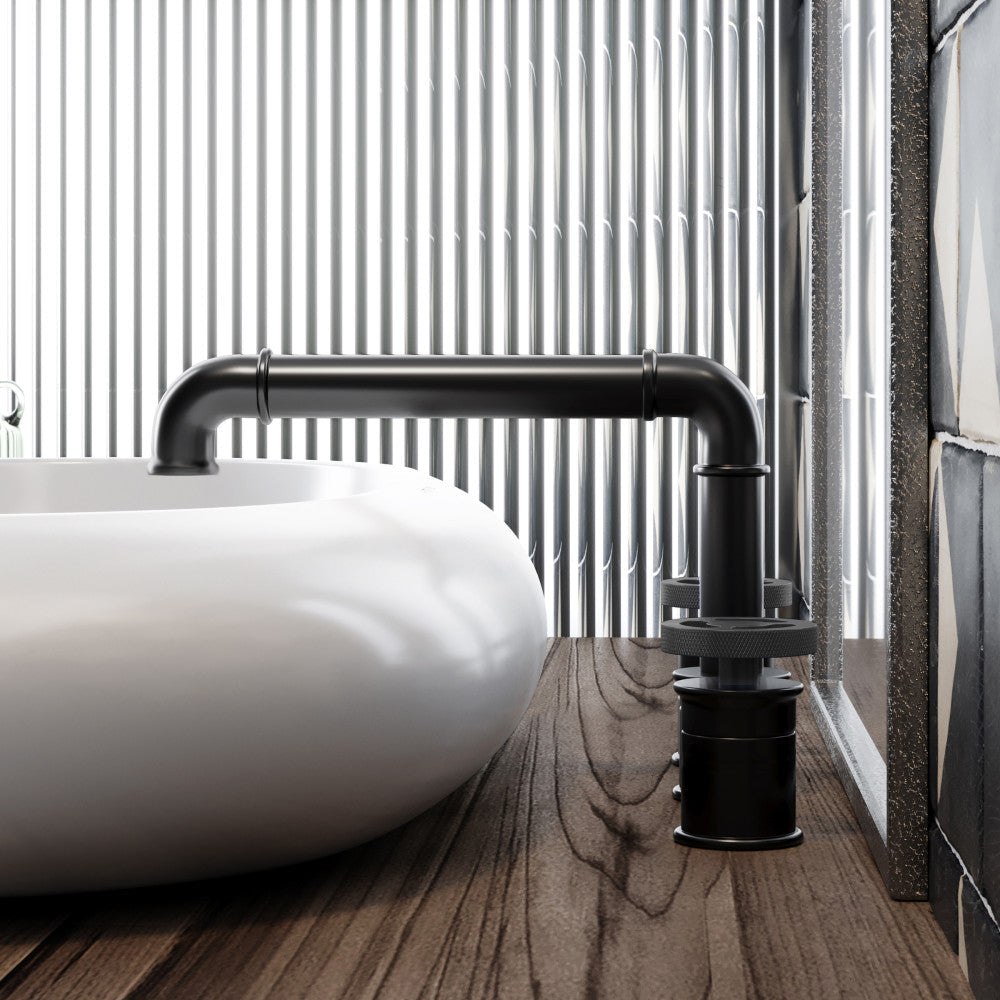 Explore the Avallon collection, where rustic charm and contemporary aesthetics merge to create a warm and inviting atmosphere. Redefine elegance in your bathroom with our widespread faucets with a timeless design and dual control. Offered in black with a matte finish.