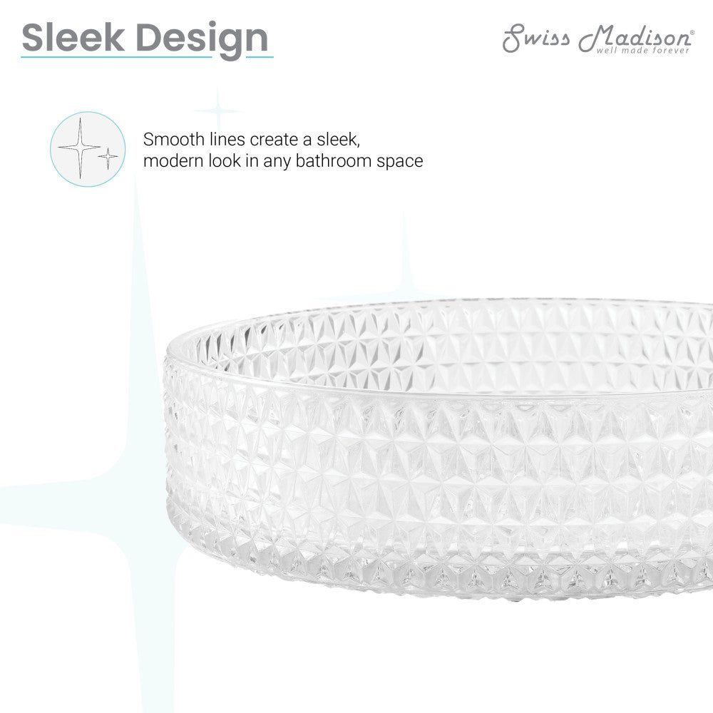 Discover simple beauty in the Cache collection, where functionality and style unite seamlessly to enhance your living space. Elevate your bathroom aesthetic with our vessel sinks, blending artistry and utility to create a stunning statement piece. Offered in clear glass with a glossy finish.