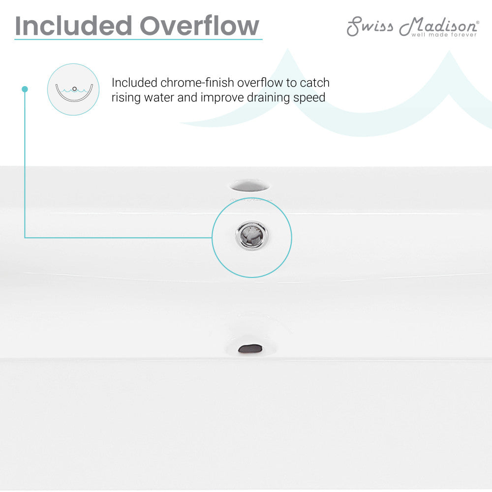 - Overflow: Equipped with an overflow that offers easy installation, spill prevention, and space-saving properties.