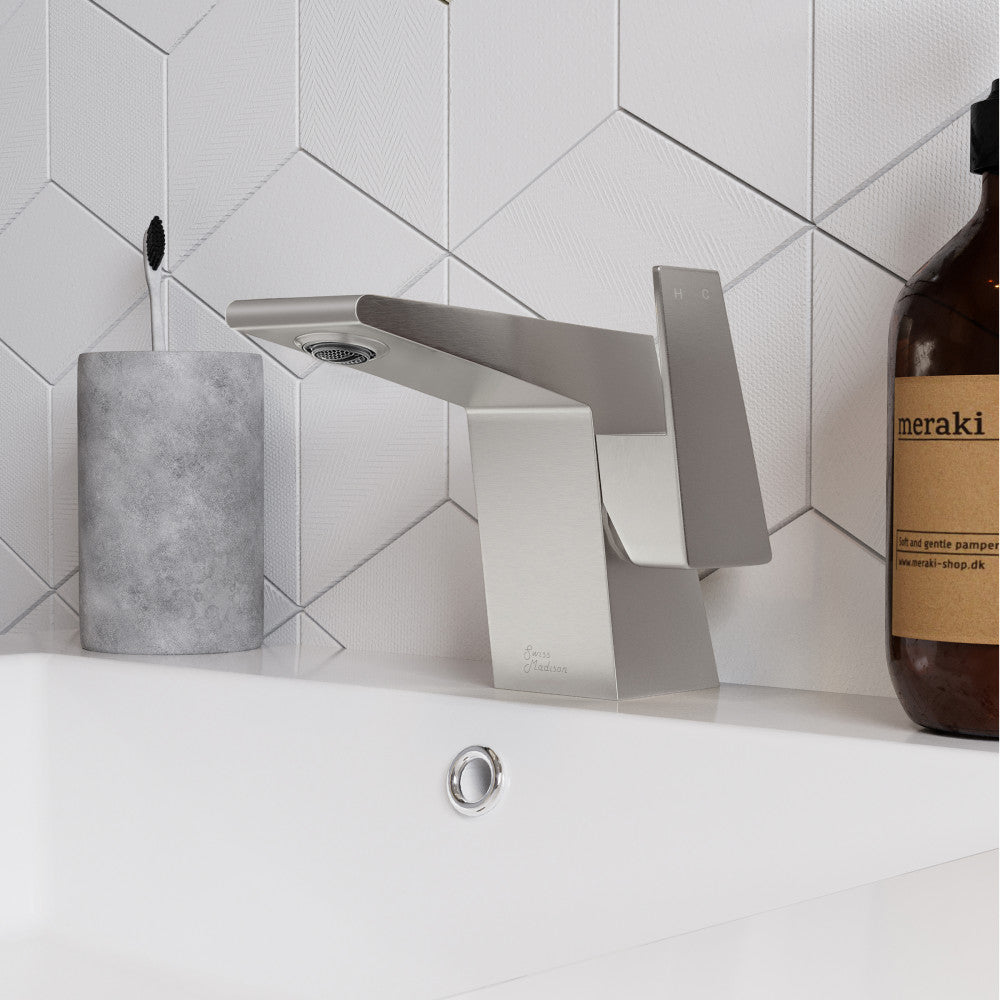 Embrace geometric balance with the Carre collection, where clean lines and modern design principles take center stage. Discover simplicity and sophistication in one with our single-handle faucets, offering smooth operation and contemporary design. Offered in brushed nickel.