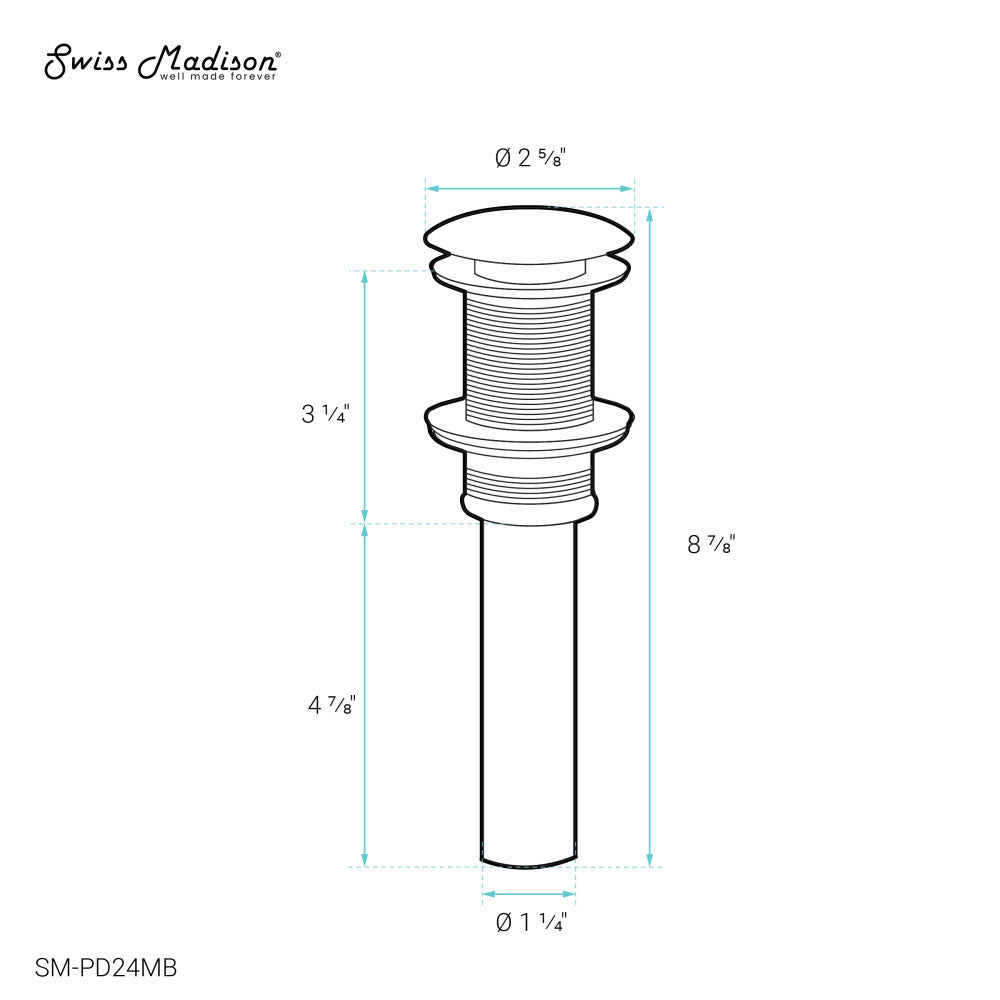 Ceramic Pop Up Drain w/o Overflow in Matte Black