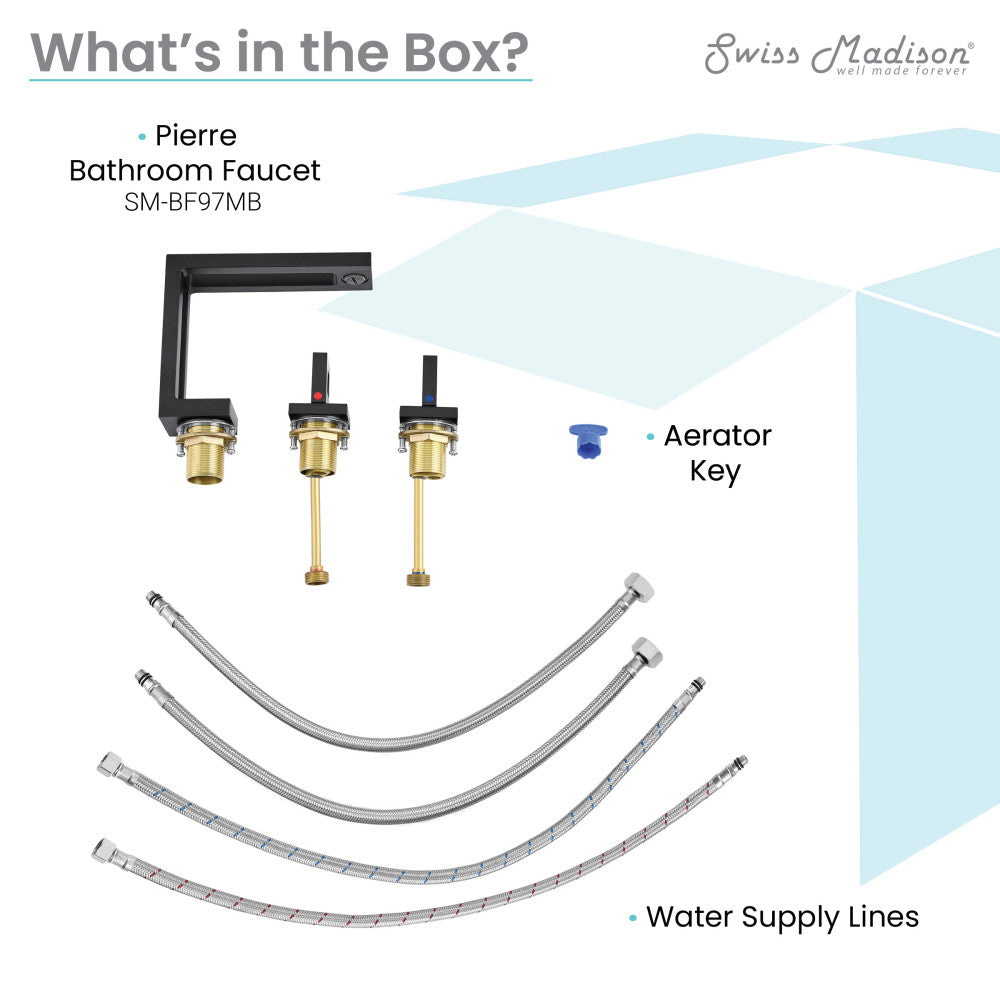 The Pierre collection offers a sleek and sophisticated style. This modern and minimalist design is the perfect way to add elegance to any space. Redefine elegance in your bathroom with our widespread faucets with a timeless design and dual control. Offered in black with a matte finish.
