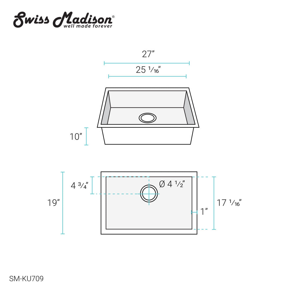 Tourner 27 x 19 Stainless Steel, Single Basin, Undermount Kitchen Sink