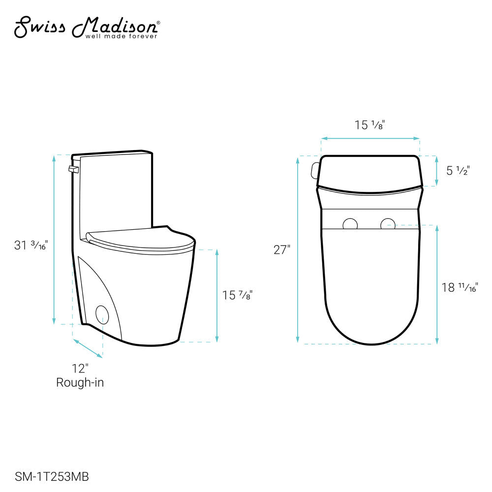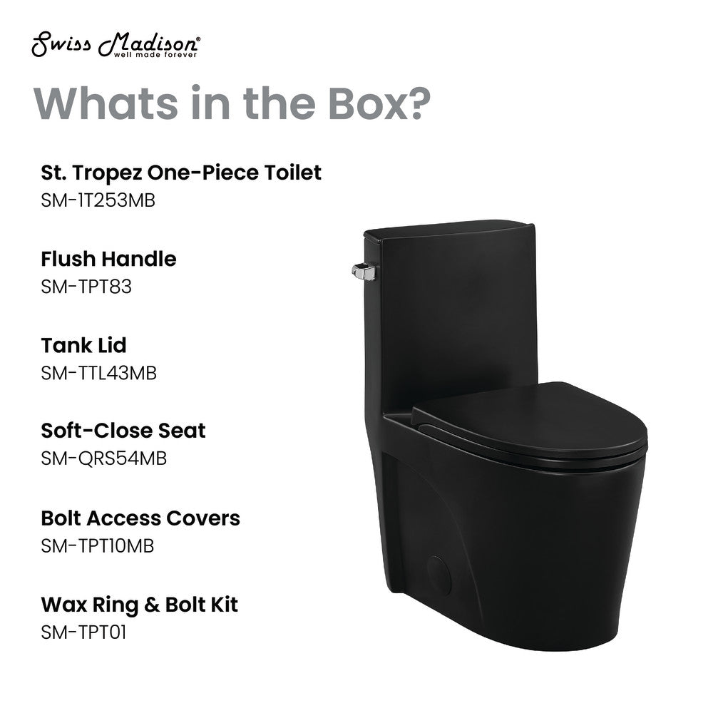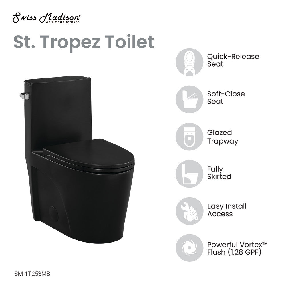 St. Tropez One-Piece Elongated Toilet Left Side Vortex Flush Handle in Matte Black 1.28 gpf