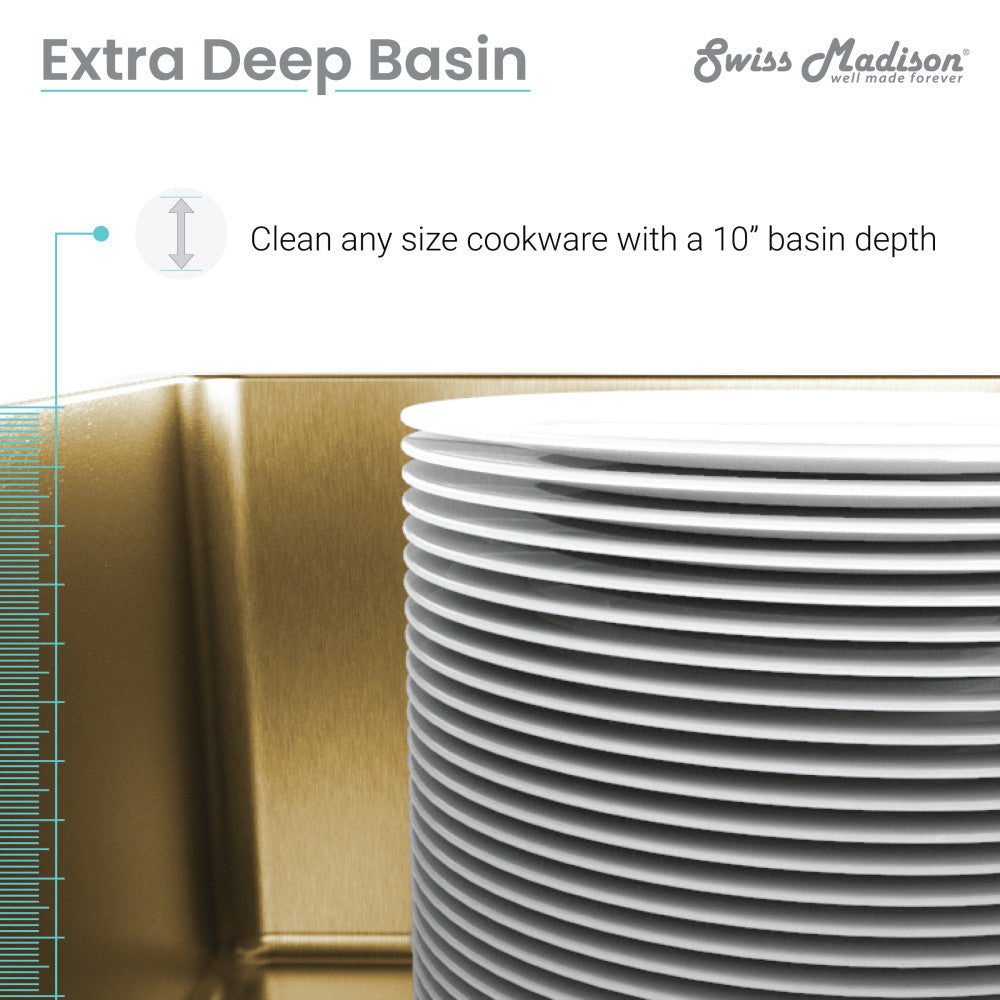 Discover the art of curves and lines with the Tourner collection, where fluid designs redefine contemporary aesthetics. Elevate your kitchen aesthetics with our undermount sinks, showcasing sleek design and maximum counter space. Offered in stainless steel with a brushed gold finish.
