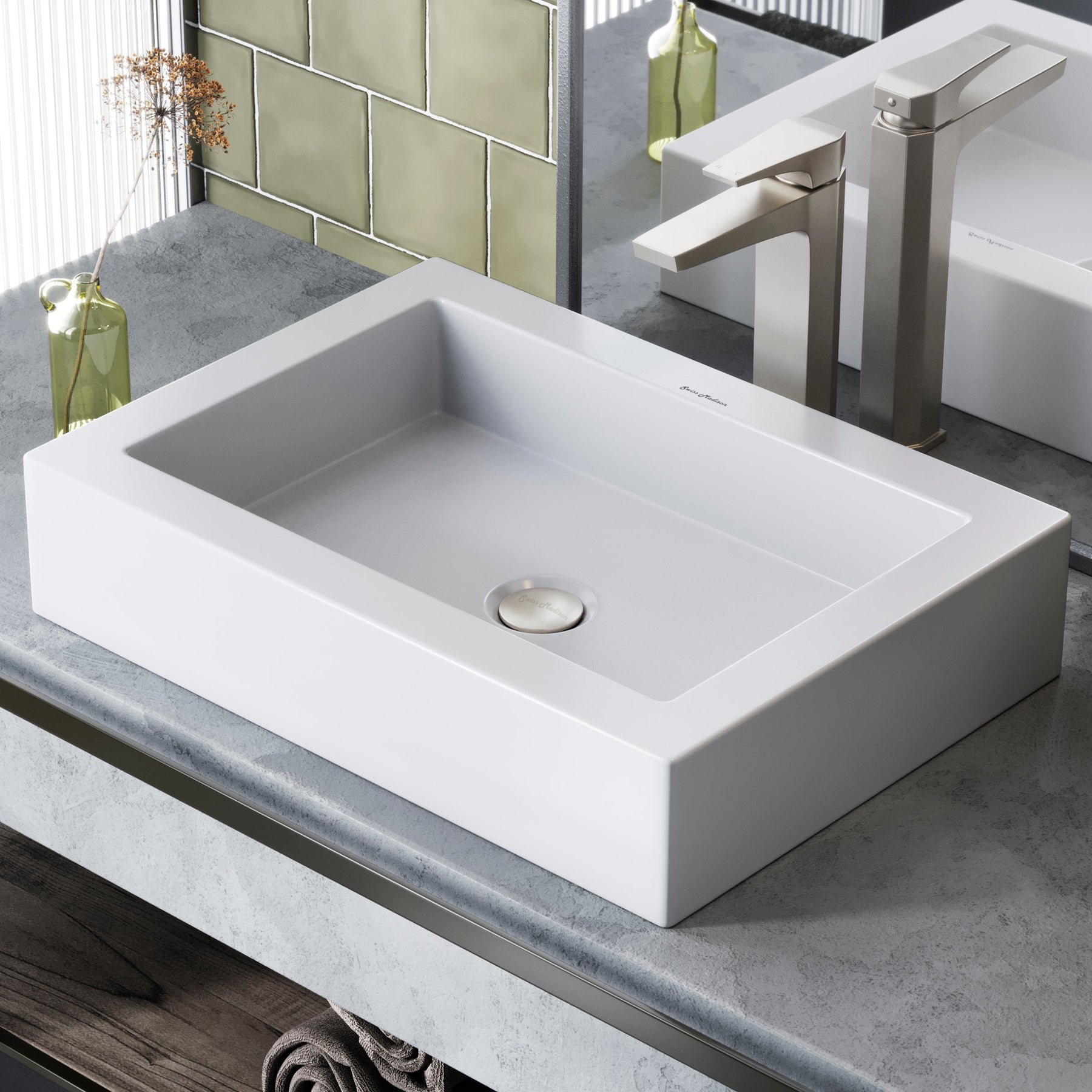 - Above-Counter Installation: A vessel sink sits above the counter top for an eye catching design.