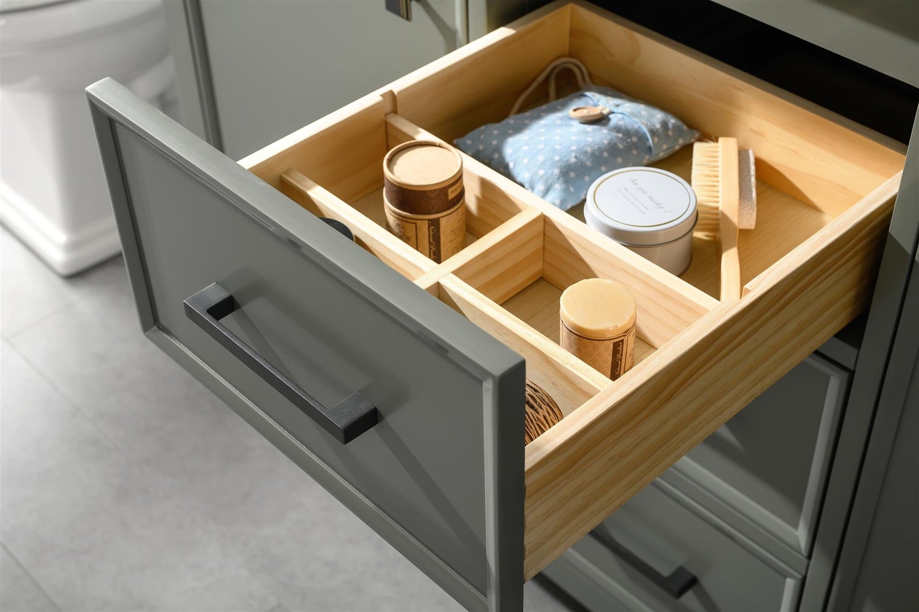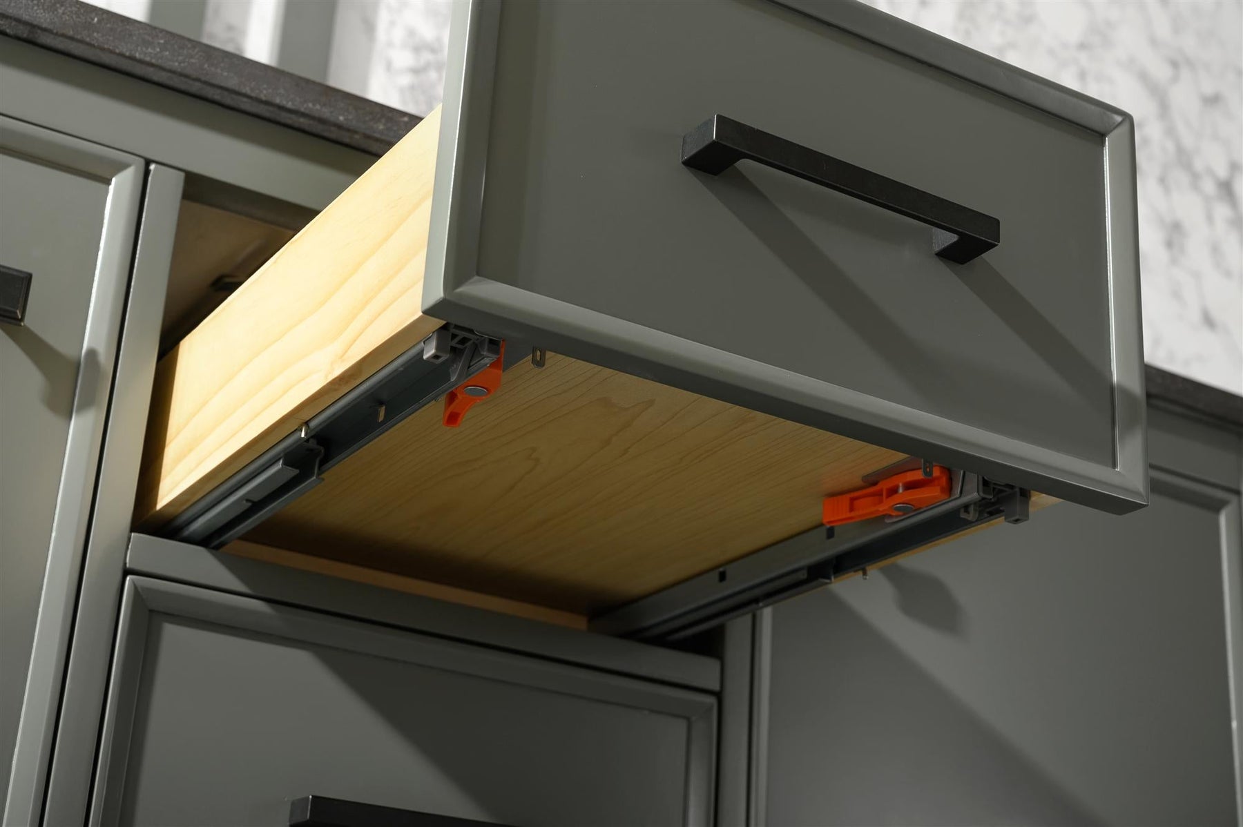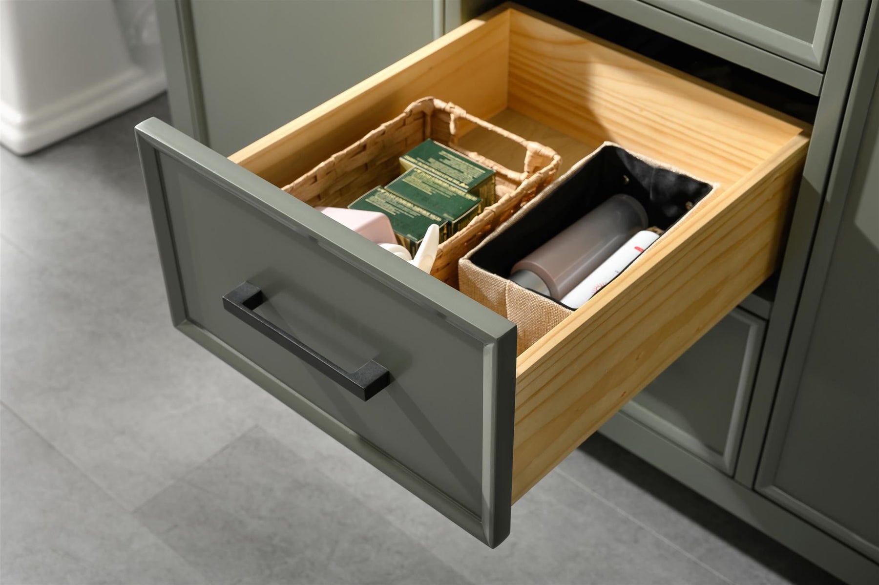 • 2 doors with inner shelf, 3 drawers, upper drawer with wood organizer