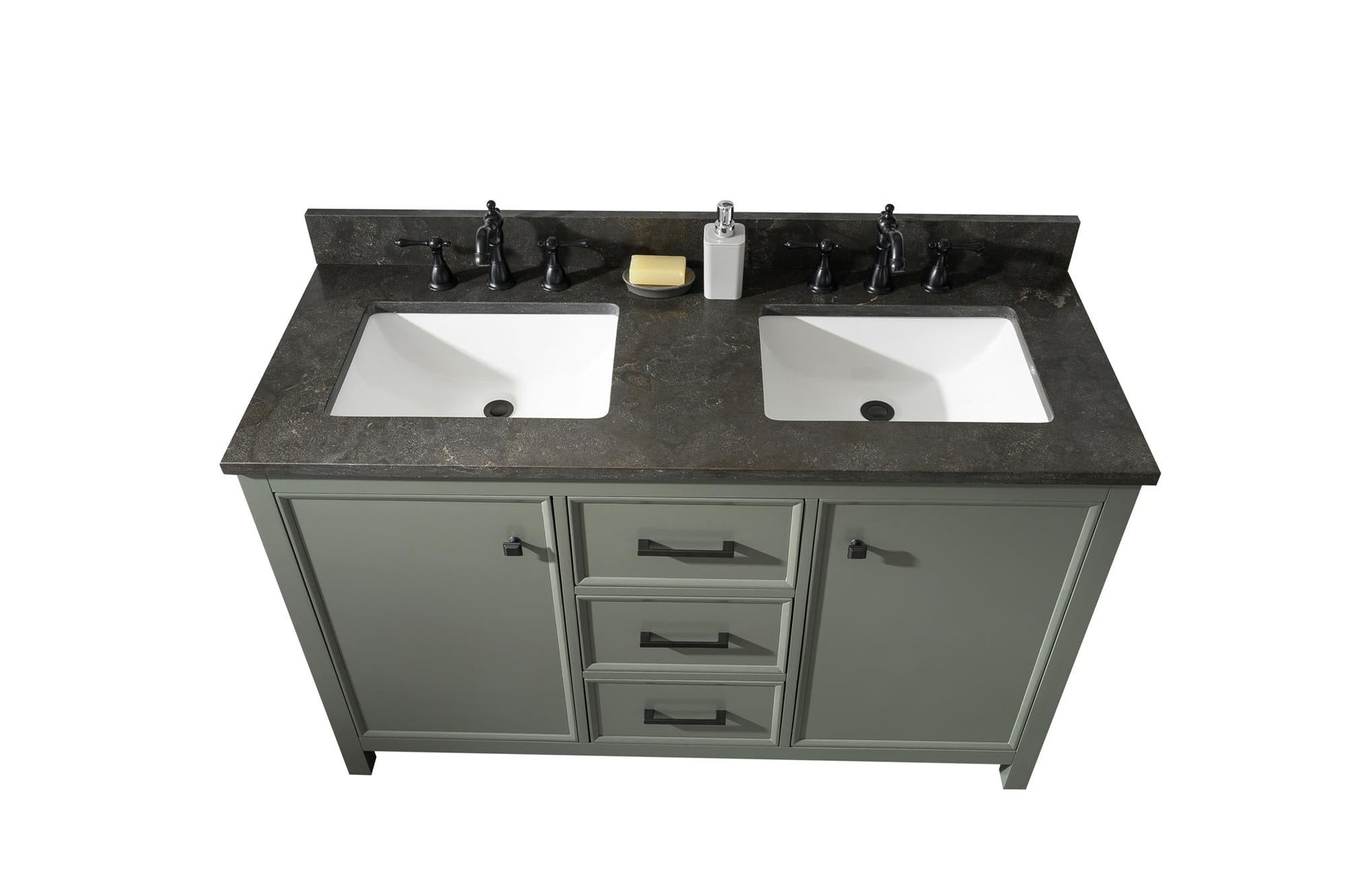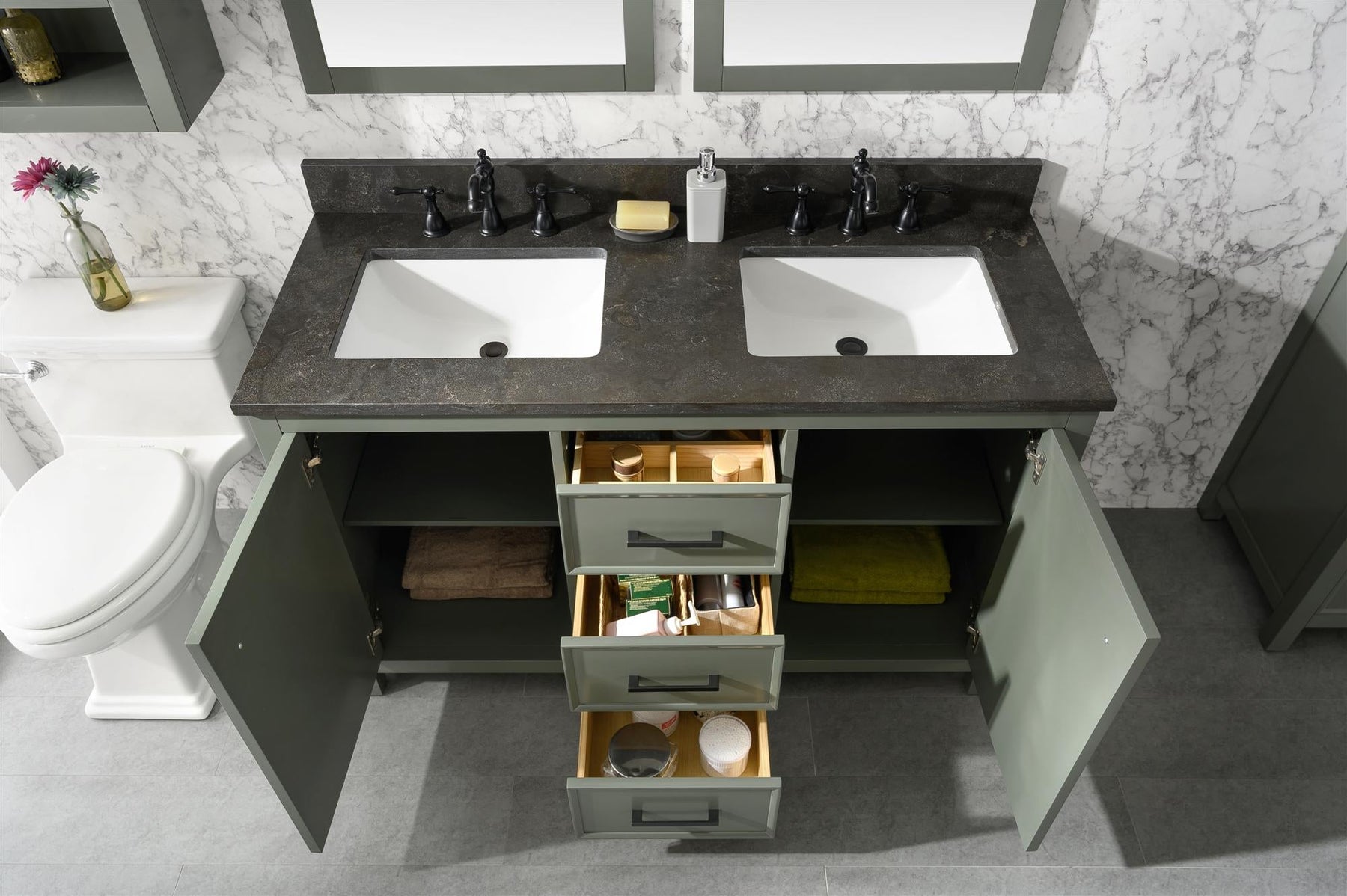 Legion Furniture 54" Pewter Green Finish Double Sink Vanity Cabinet with Blue Lime Stone Top - WLF2154-PG
