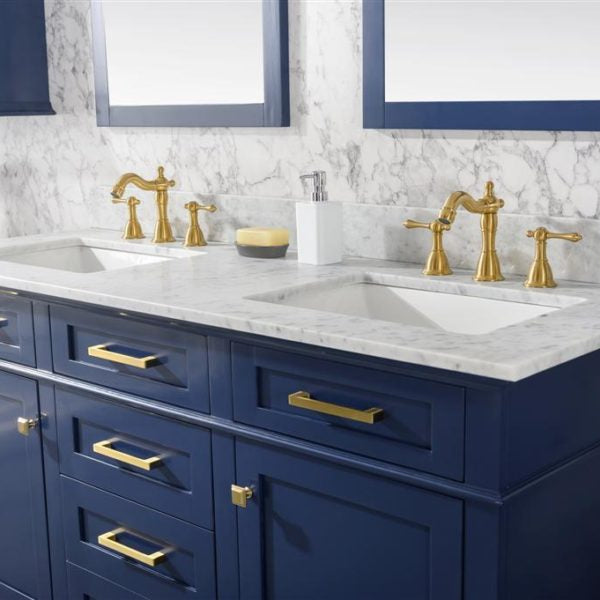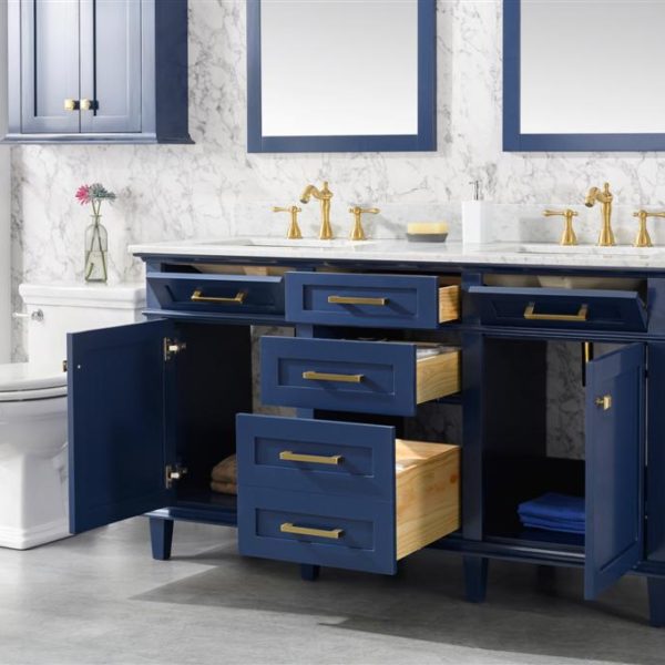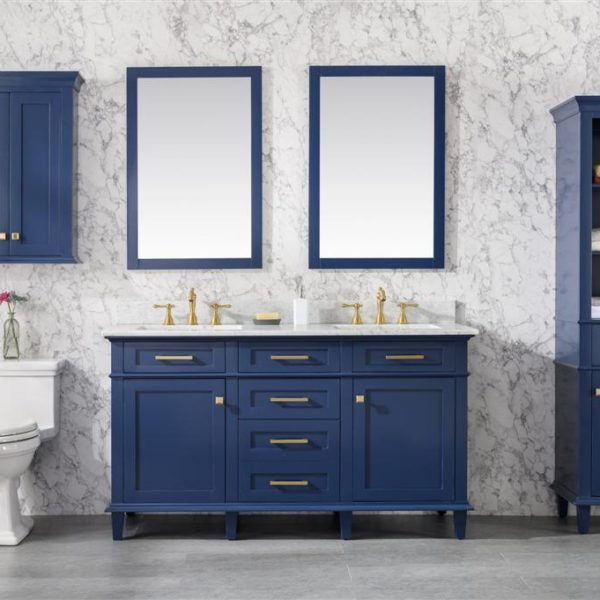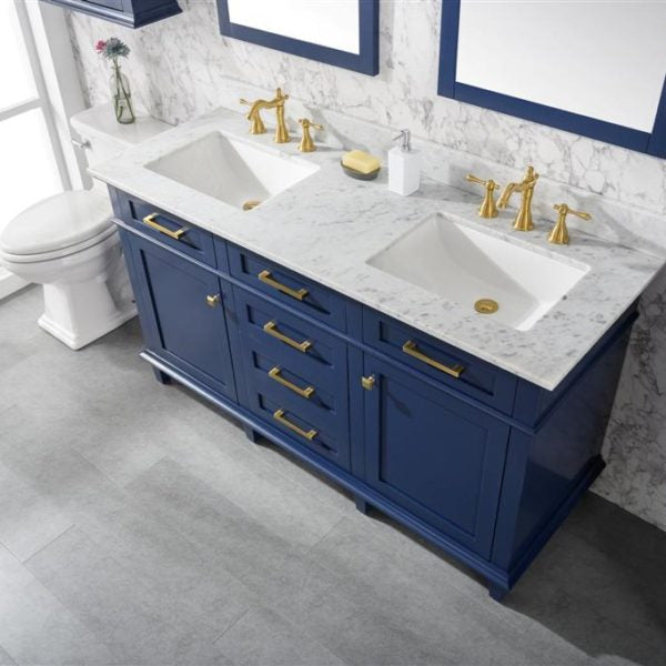 Legion Furniture 60" Blue Finish Double Sink Vanity Cabinet with Carrara White Top - WLF2260D-B