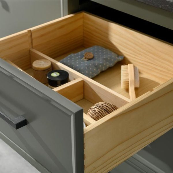 • 1 door with inner shelf, 6 drawers, upper drawer with wood organizer