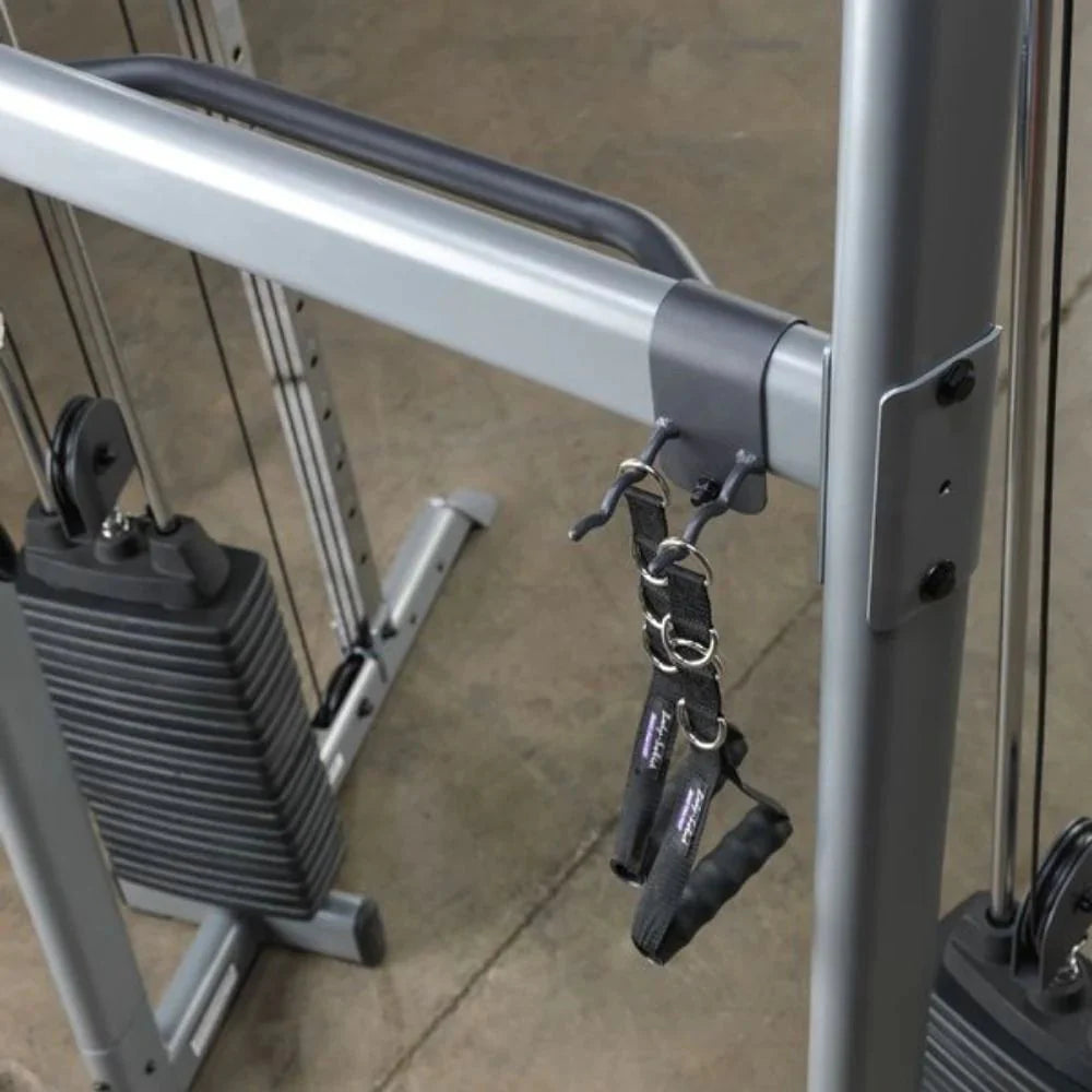 From a convenient place to hang your towel to a sturdy support for stretching routines to a graspable handle to brace for leg exercises, the GDCC Functional Trainer Accessory Rack is an indispensable addition to your Body-Solid GDCC210 Functional Trainer.