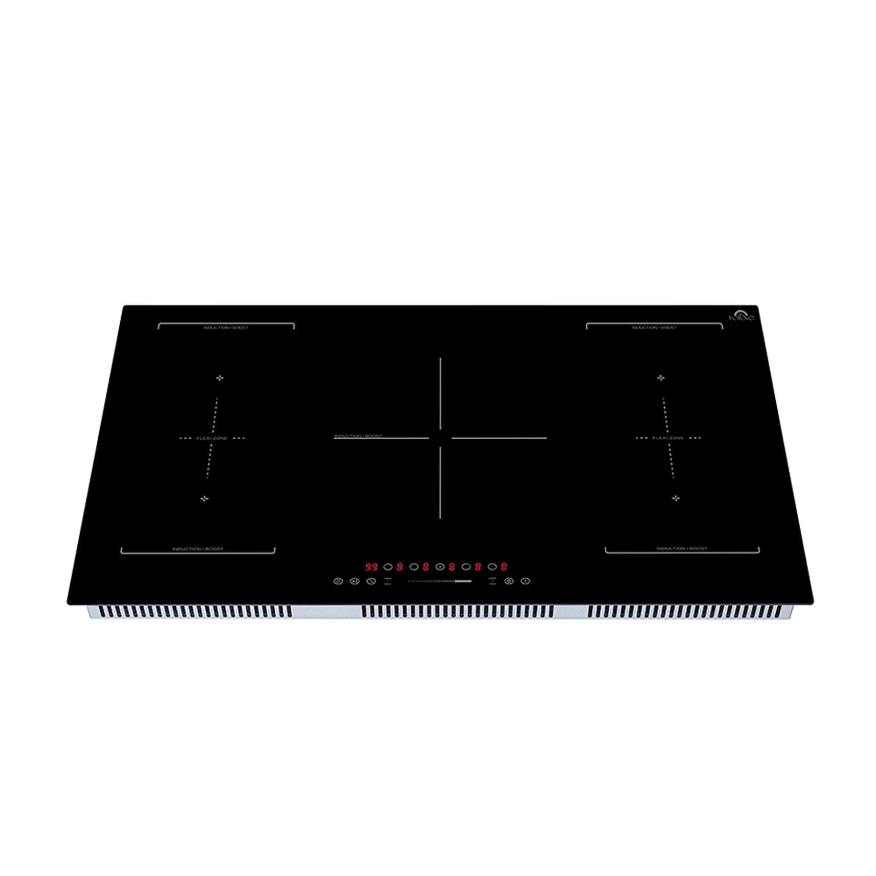 Designed for efficiency and versatility, the Ornonzo 36" Induction Cooktop delivers powerful performance with five induction burners, ranging from 1500 to 3000 watts. Each zone features 9 power levels and a Boost function, reaching up to 3600 watts, making it ideal for everything from gentle simmering to rapid boiling. The flex-zone technology transforms two burners into a larger cooking surface, perfect for griddles and oversized cookware. A 99-minute timer ensures precision cooking by automatically shutting off zones when time is up, while the Stop & Go function allows you to pause and resume cooking effortlessly. The 11-inch center burner reaches 3000 watts on Boost, delivering rapid boiling and high-heat searing. User-friendly touch controls provide effortless operation, while the smooth ceramic glass surface ensures even heat distribution and easy cleaning. Safety is a priority with automatic shut-off and an Intelligent Pan Detection System, which prevents heating unless compatible cookware is detected.