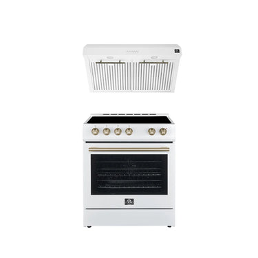 Upgrade your kitchen with the FORNO Premium 2-Piece Kitchen Bundle. This bundle includes the Leonardo Espresso 30" White Electric Range and the 30" White Under Cabinet Range Hood. Each appliance features a sleek white finish, combining elegance and high performance.