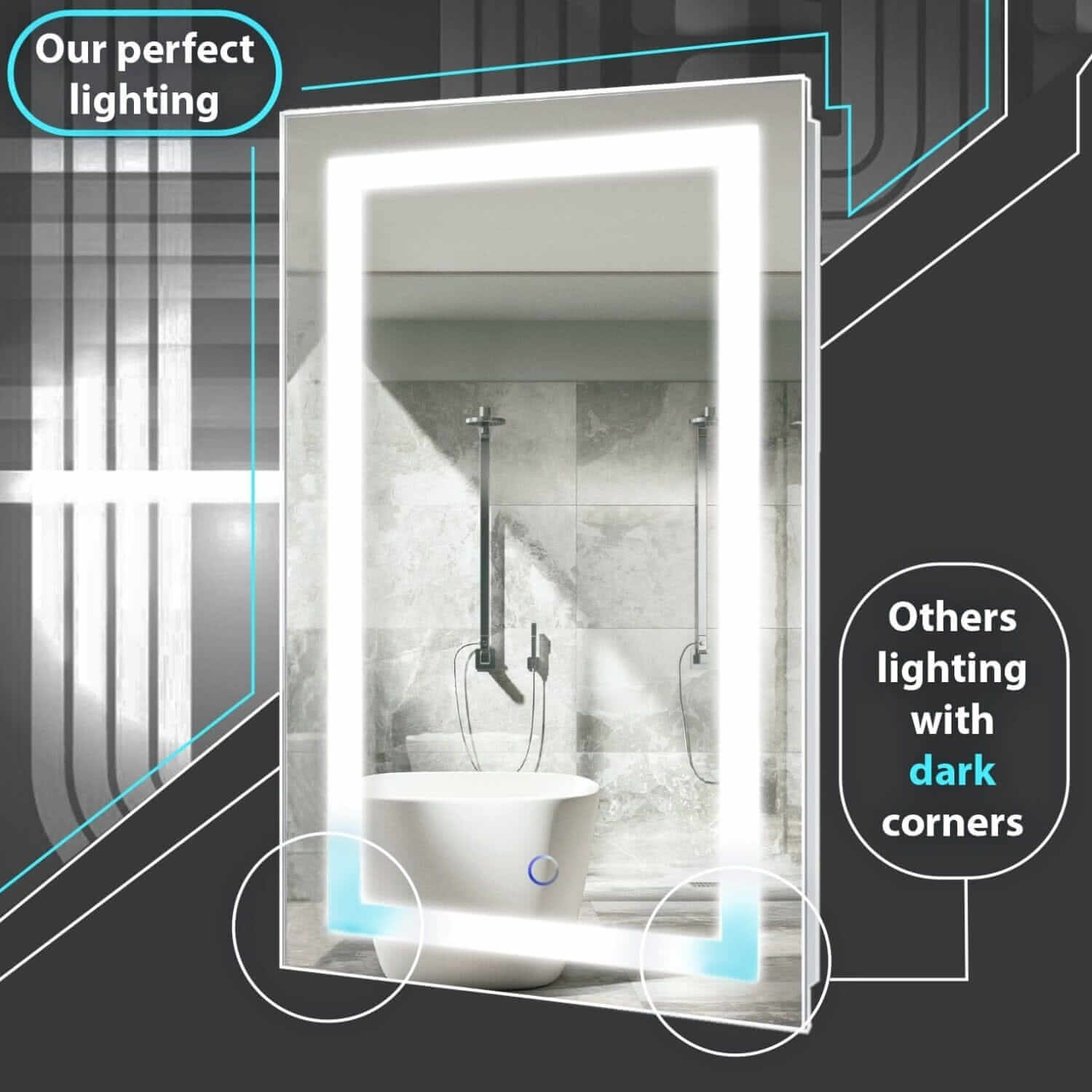 Whether in a busy bathroom or a high-traffic professional space, this lighted mirror maintains superior clarity and functionality, enhancing your daily routine and adding a touch of elegance to any environment.