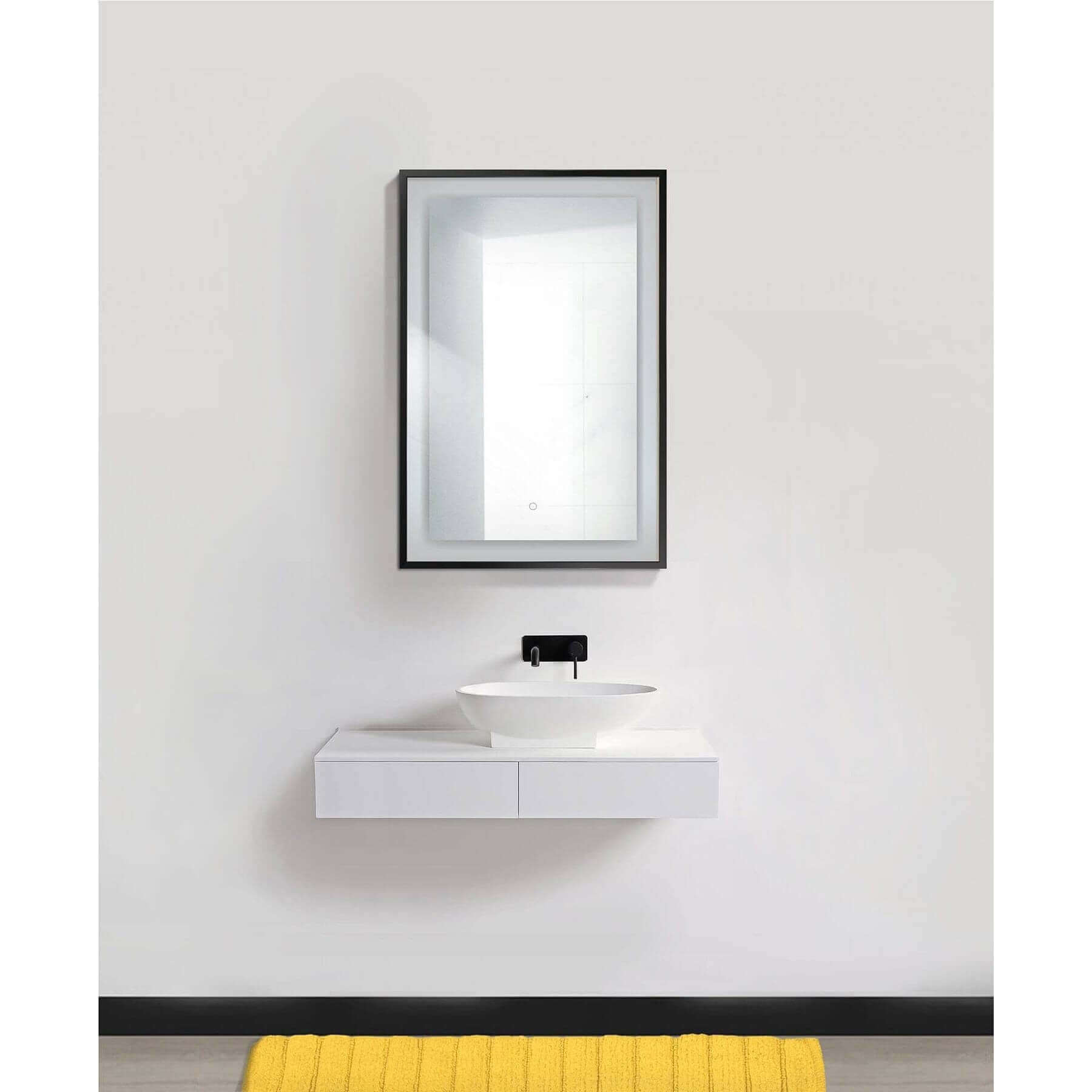 Whether in a busy bathroom or a high-traffic professional space, the Krugg Soho 24 x 36 Matte Black LED Bathroom Mirror maintains superior clarity and functionality, enhancing your daily routine and adding a touch of elegance to any environment.