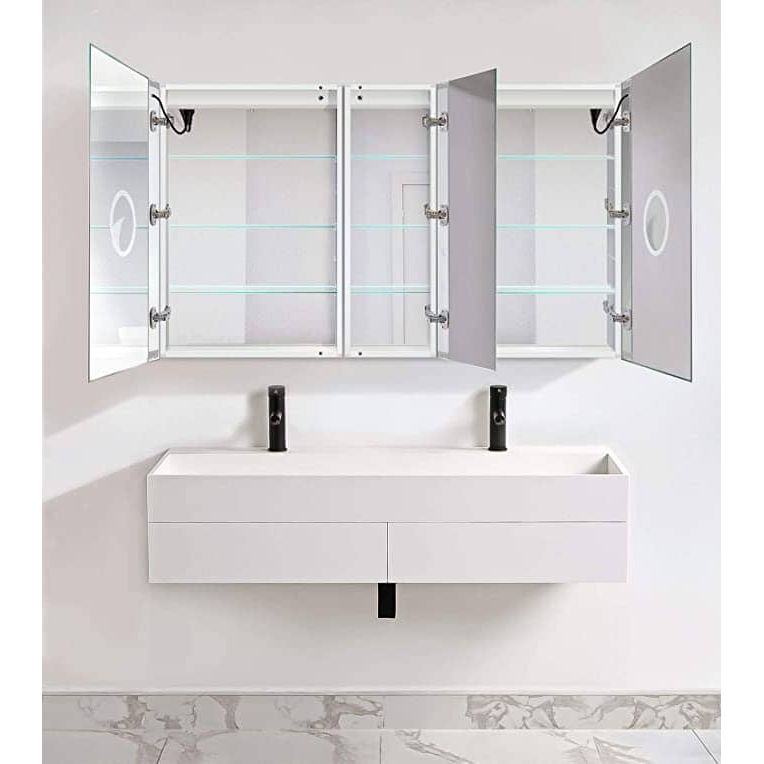 Elevate your bathroom with the Krugg Svange 6036DLLR LED Medicine Cabinet. This lighted medicine cabinet is designed with a unique Left, Left, and Right door configuration, providing an elegant solution to your storage needs.