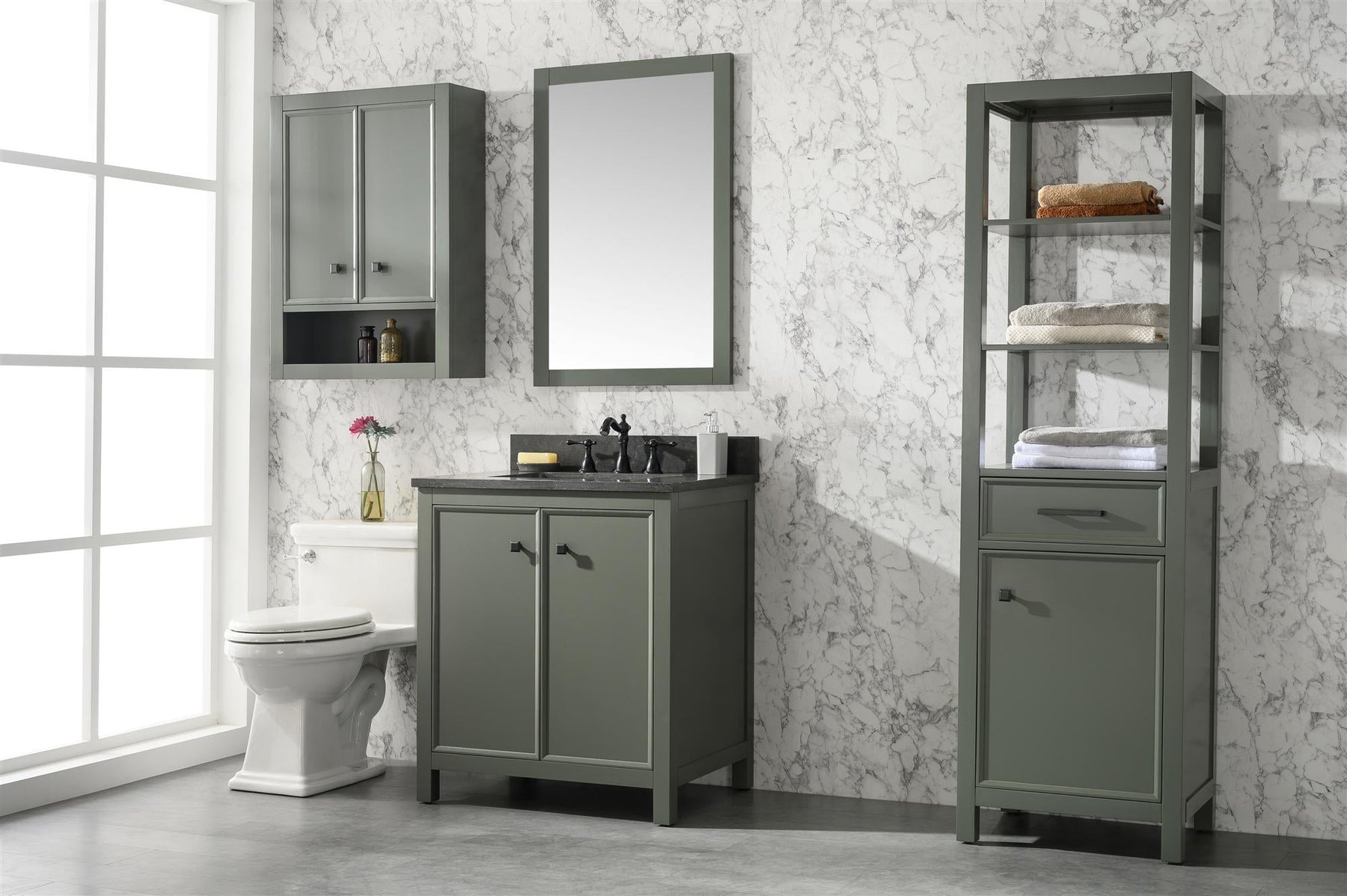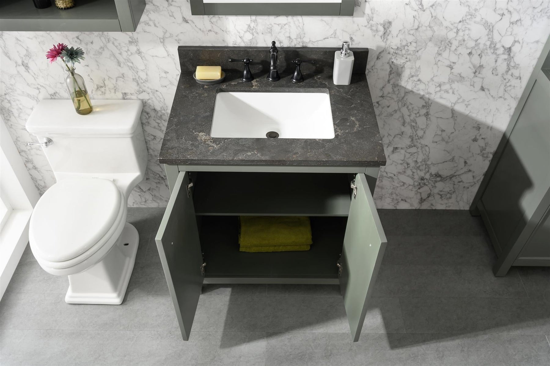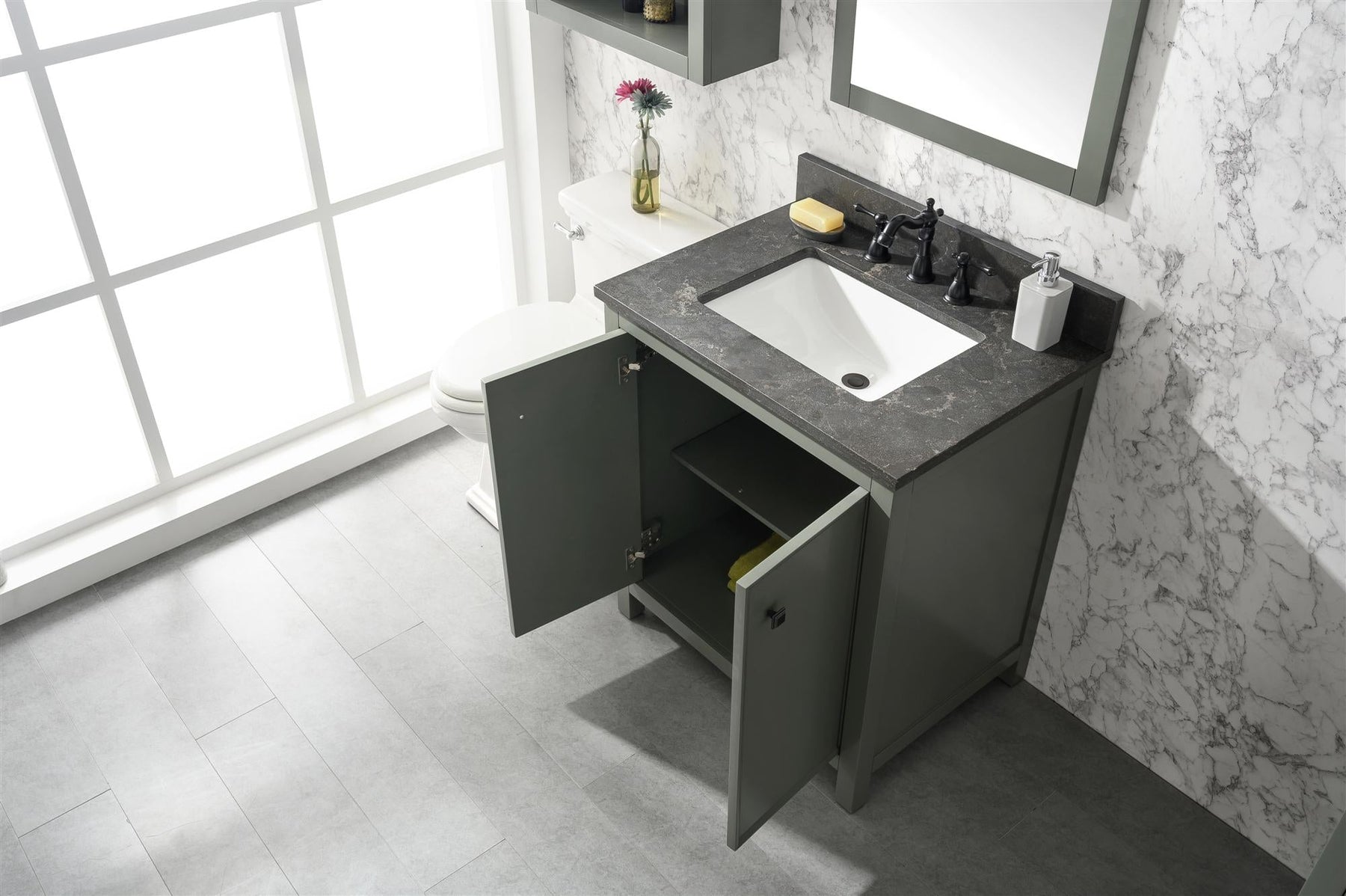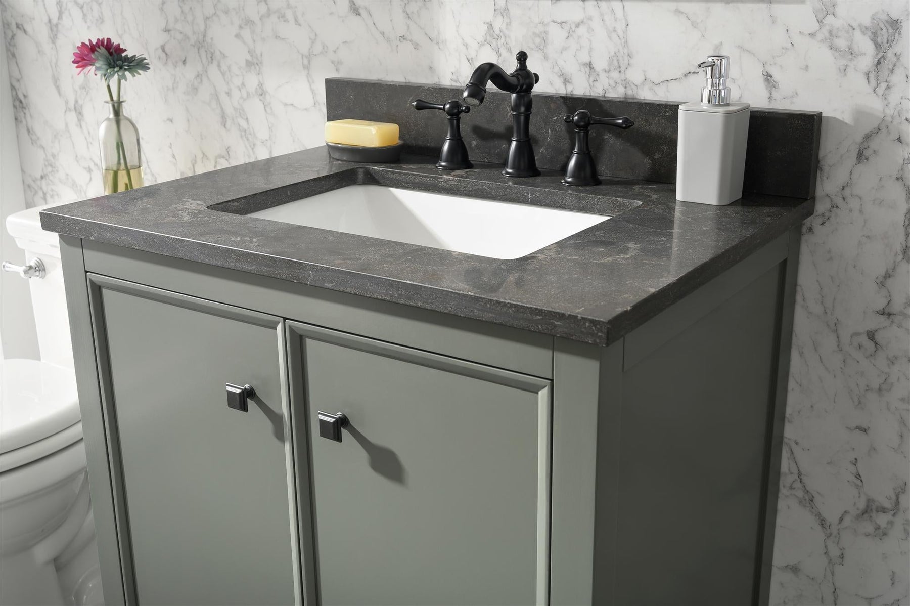 The WLF2130 Series of vanities from Legion Furniture is the perfect add to finish your bath remodel. Two large doors conceal the ample storage in this small vanity. With the internal shelf you get two distinct storage areas. The blue limestone top is the perfect complement to the pewter green cabinet. We are your vanity cabinet experts.