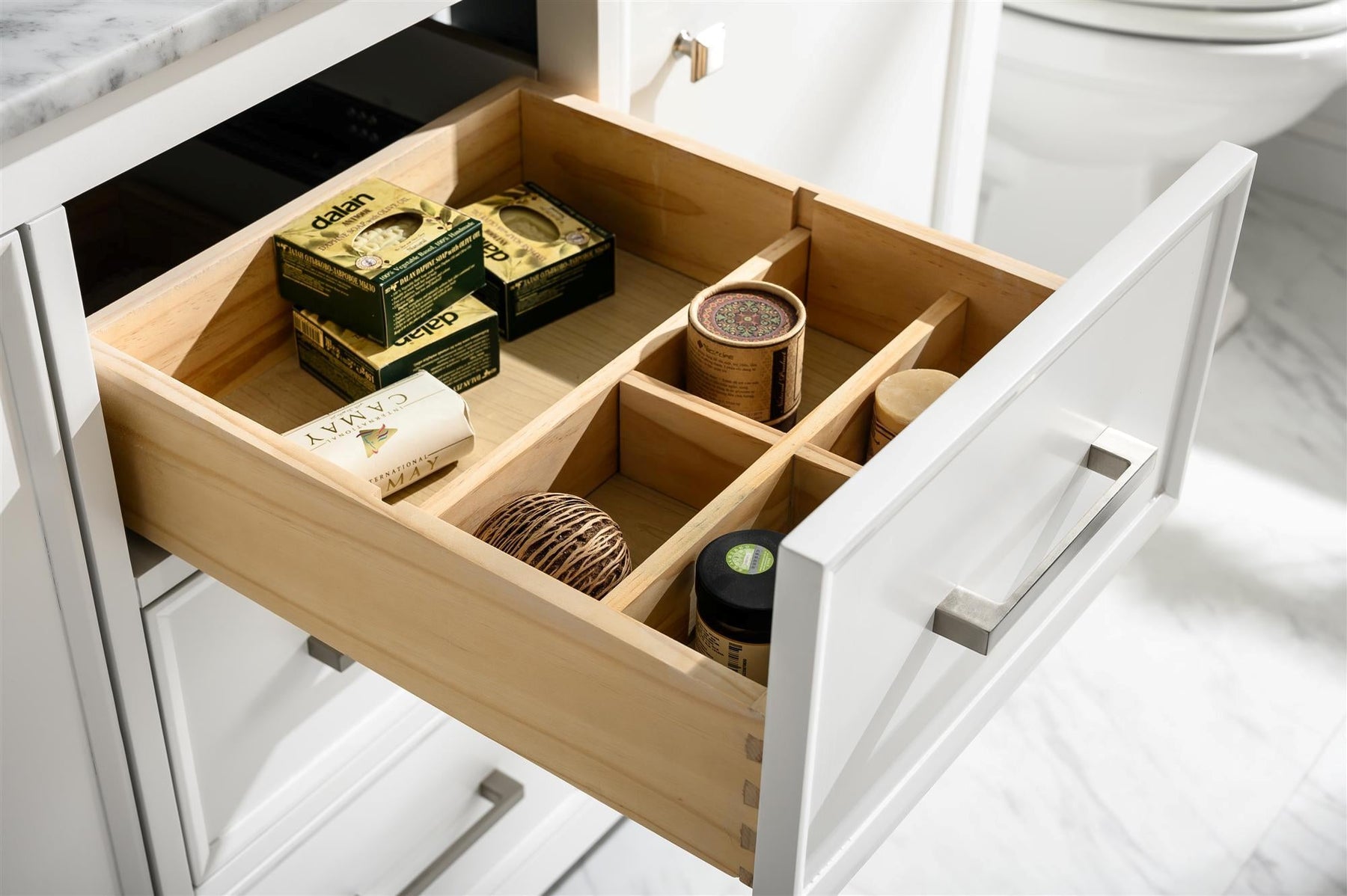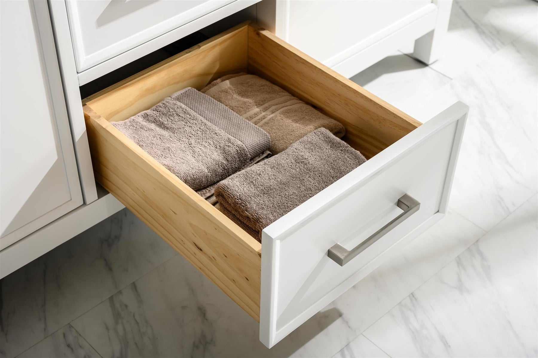 The WLF2154 Series of vanities from Legion Furniture is the unique piece your bath must have. The clean lines of this design is at home in any bath. A white Carrara marble top caps this vanity. Three drawers and two large doors with soft closing hardware maximize storage. We are your vanity cabinet experts.