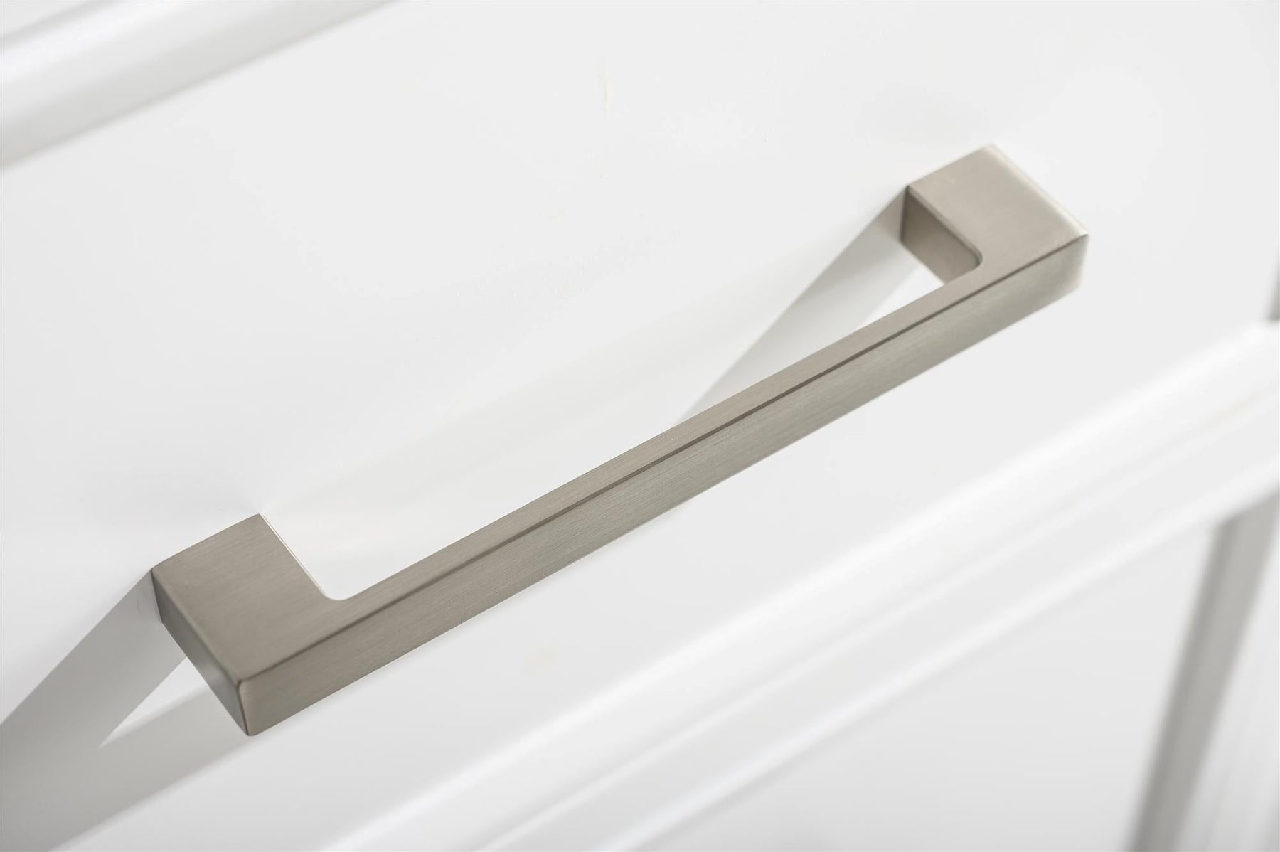 • The 18mm white Carrara marble top is the perfect complement to the color of the vanity, and adds a touch of luxury to your bath.