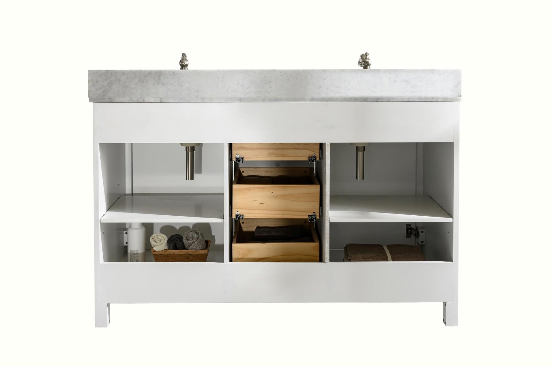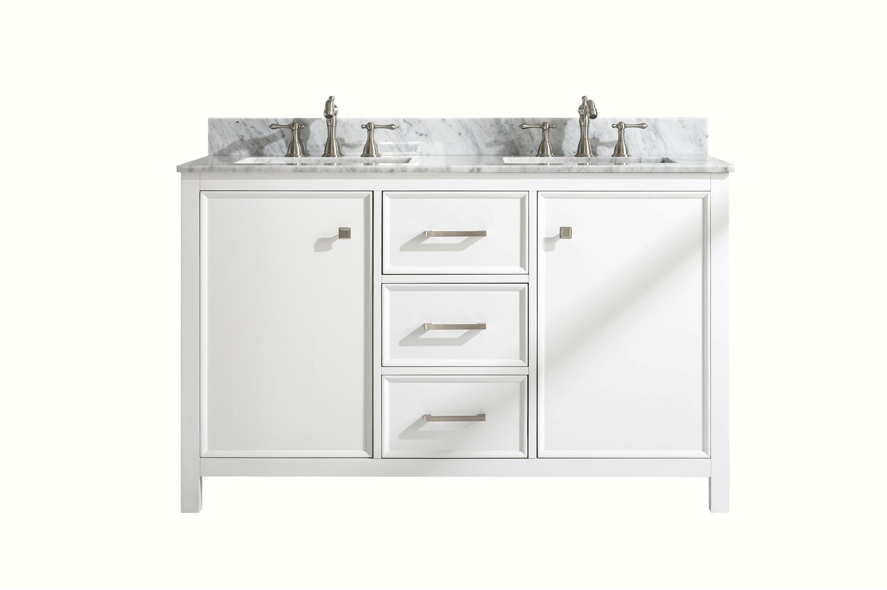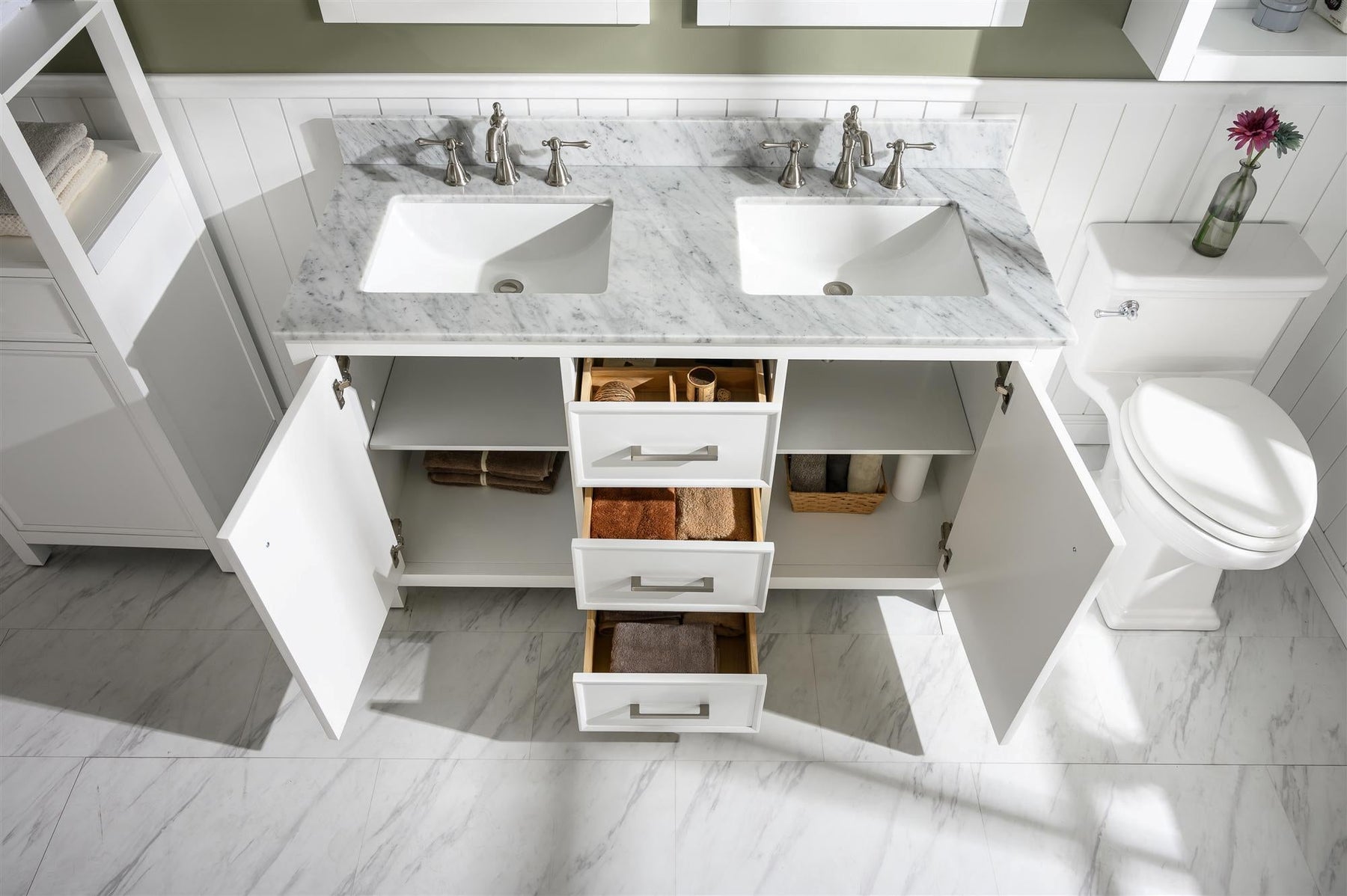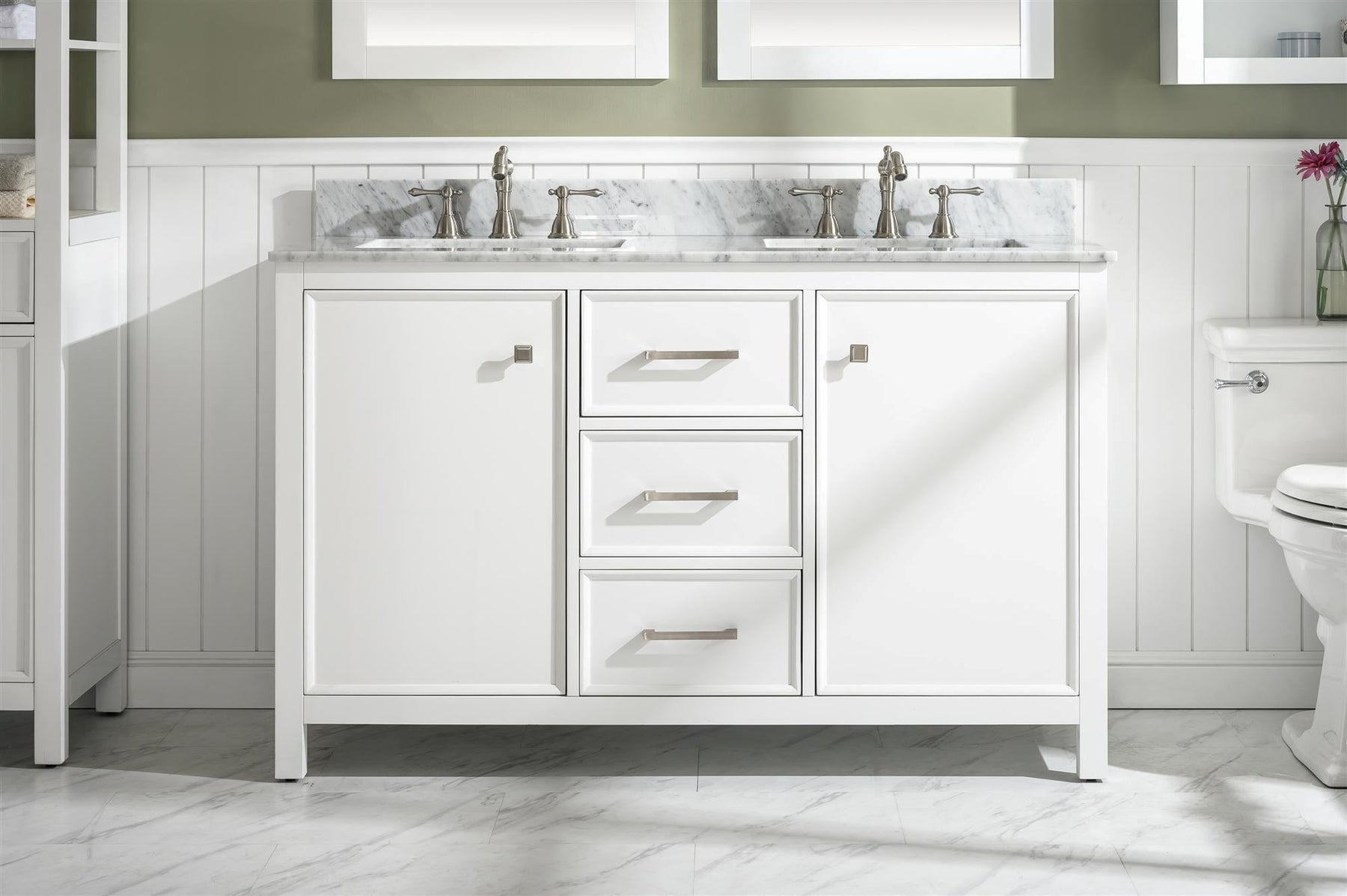 Legion Furniture WLF2154 Series 54” Double Sink Vanity in White with Carrara Marble White Top