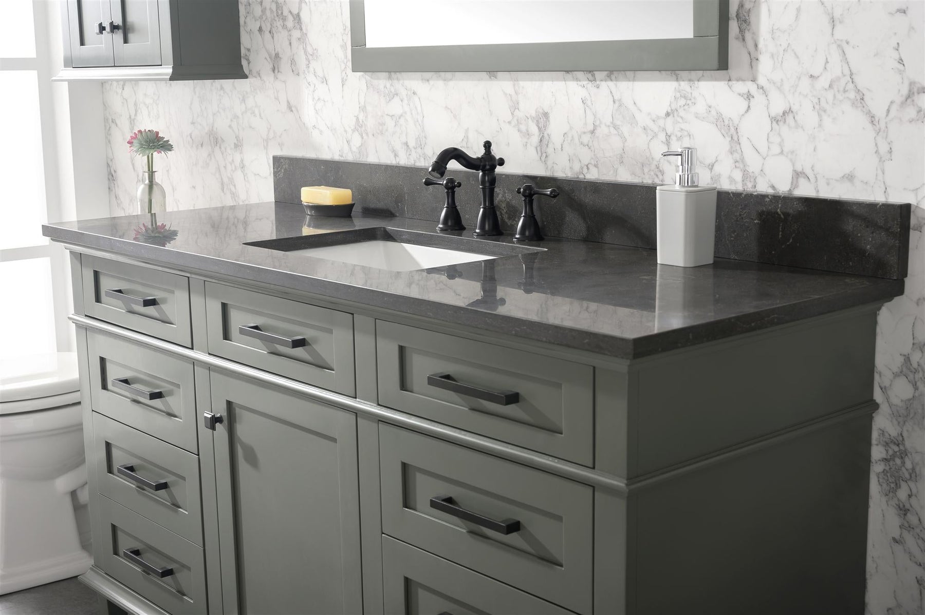 - The 25mm blue limestone top is the perfect complement to the color of the vanity, and adds a touch of luxury to your bath.