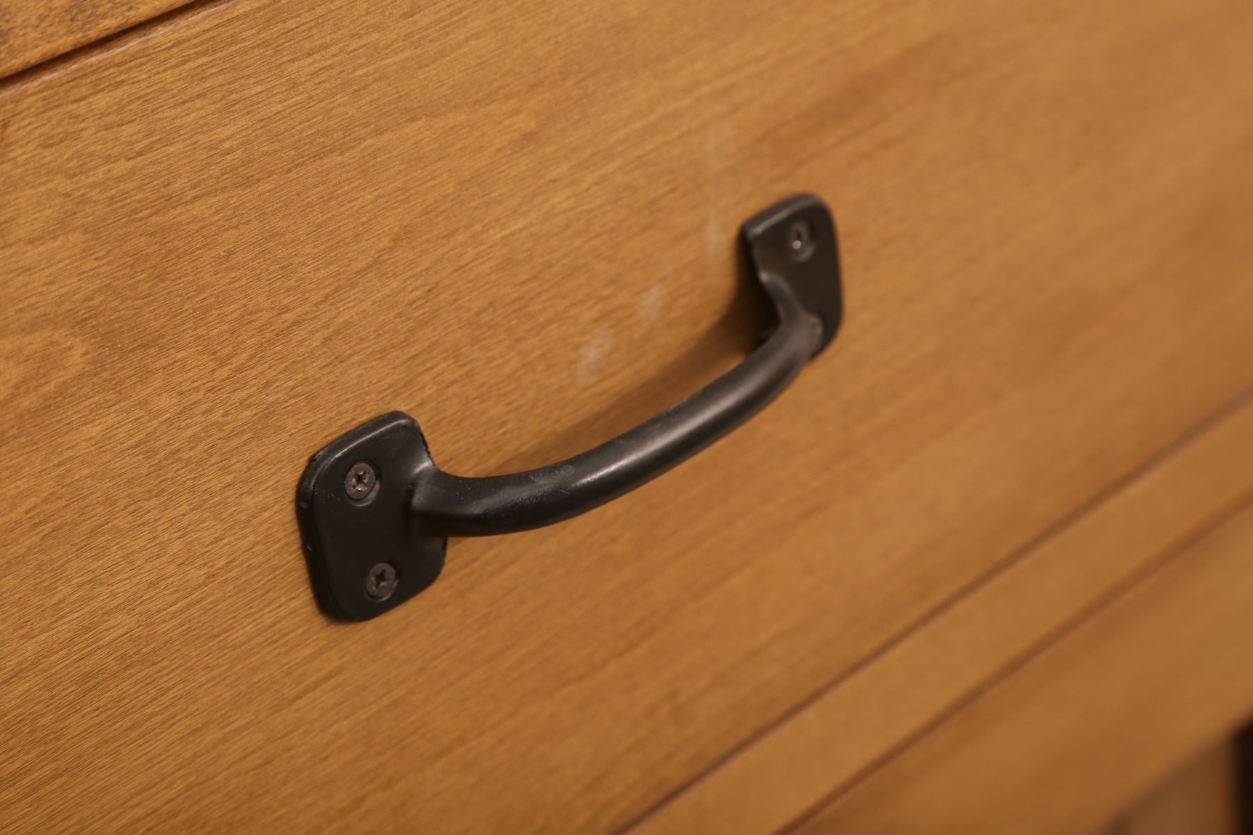 • Two doors conceal the large internal storage space, and the fold down drawer is perfect for small items.