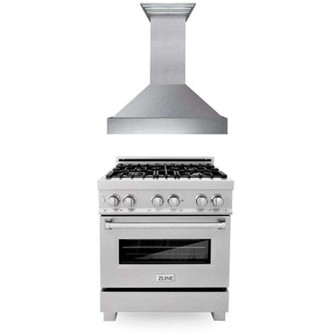 ZLINE 30 in. Kitchen Package with Satin Stainless Steel Dual Fuel Range and Convertible Vent Range Hood (2KP-RASSNRH30)
