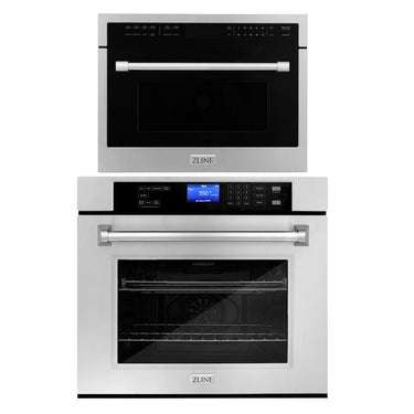 Home ZLINE Stainless Steel 24 in. Built-in Convection Microwave Oven and 30 in. Single Wall Oven with Self Clean (2KP-MW24-AWS30)