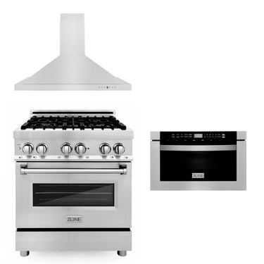 Home ZLINE 30 in. Kitchen Package with Stainless Steel Dual Fuel Range, Convertible Vent Range Hood and Microwave Drawer (3KP-RARH30-MW)