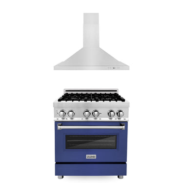 ZLINE 30 in. Kitchen Package with Stainless Steel Dual Fuel Range with Blue Matte Door and Convertible Vent Range Hood (2KP-RABMRH30)