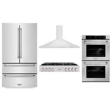 ZLINE Kitchen Package with Refrigerator, 48 in. Stainless Steel Rangetop, 48 in. Range Hood and 30 in. Double Wall Oven (4KPR-RTRH48-AWD)
