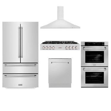 ZLINE Kitchen Package with Refrigerator, 48 in. Stainless Steel Rangetop, 48 in. Range Hood, 30 in. Double Wall Oven and 24 in. Tall Tub Dishwasher (5KPR-RTRH48-AWDDWV)