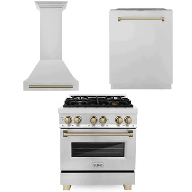Home ZLINE Autograph Edition 30 in. Kitchen Package with Stainless Steel Dual Fuel Range and Range Hood with Champagne Bronze Accents (3AKP-RARHDWM30-CB)