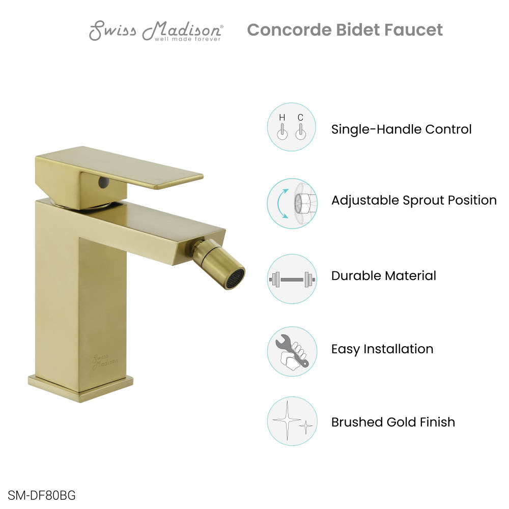 Discover the allure of modern opulence with the Concorde collection, where sleek designs and luxurious materials evoke a sense of opulence. Enhance your bathroom experience with our reliable bidet faucets, offering functionality and lasting quality. Offered in brushed gold.