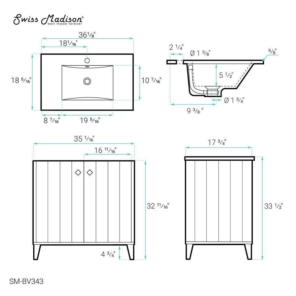 Eclair 36 Single, Two Doors, Bathroom Vanity