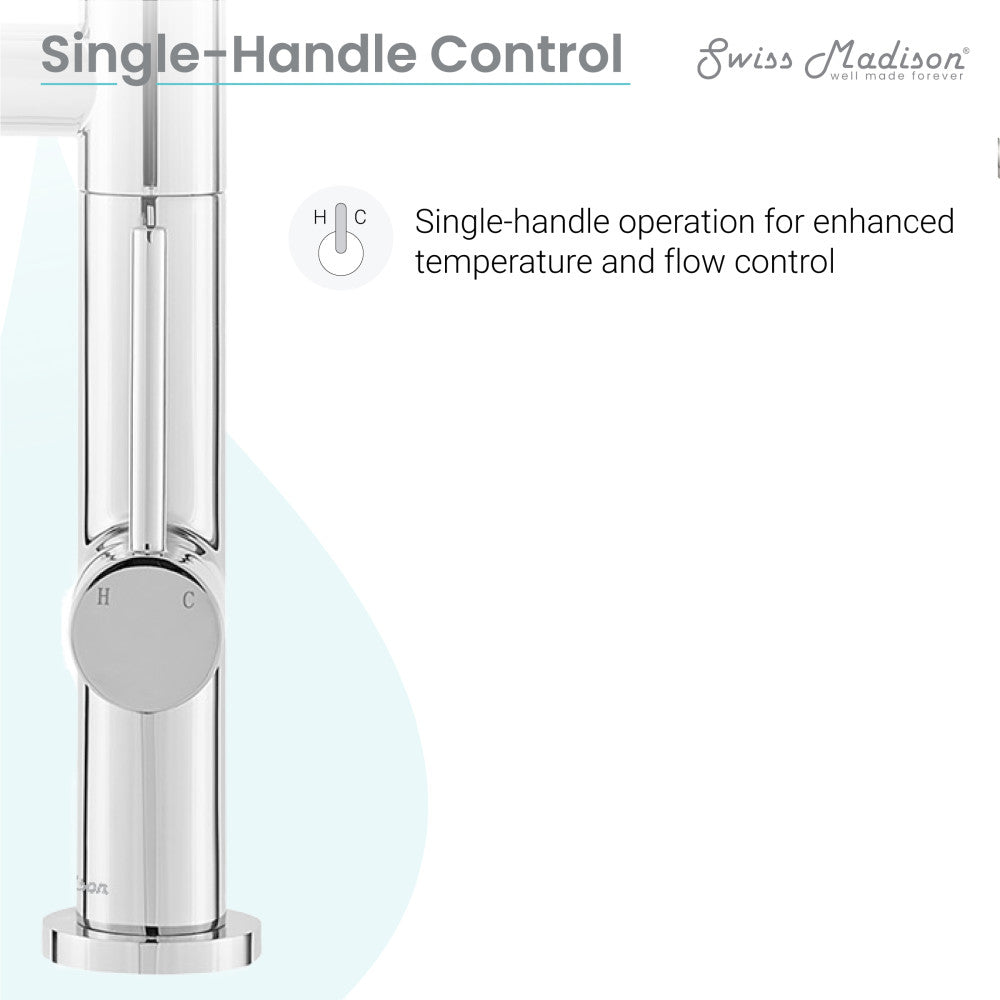 • Installation: Designed for single-hole or three-hole installation with a deck plate.